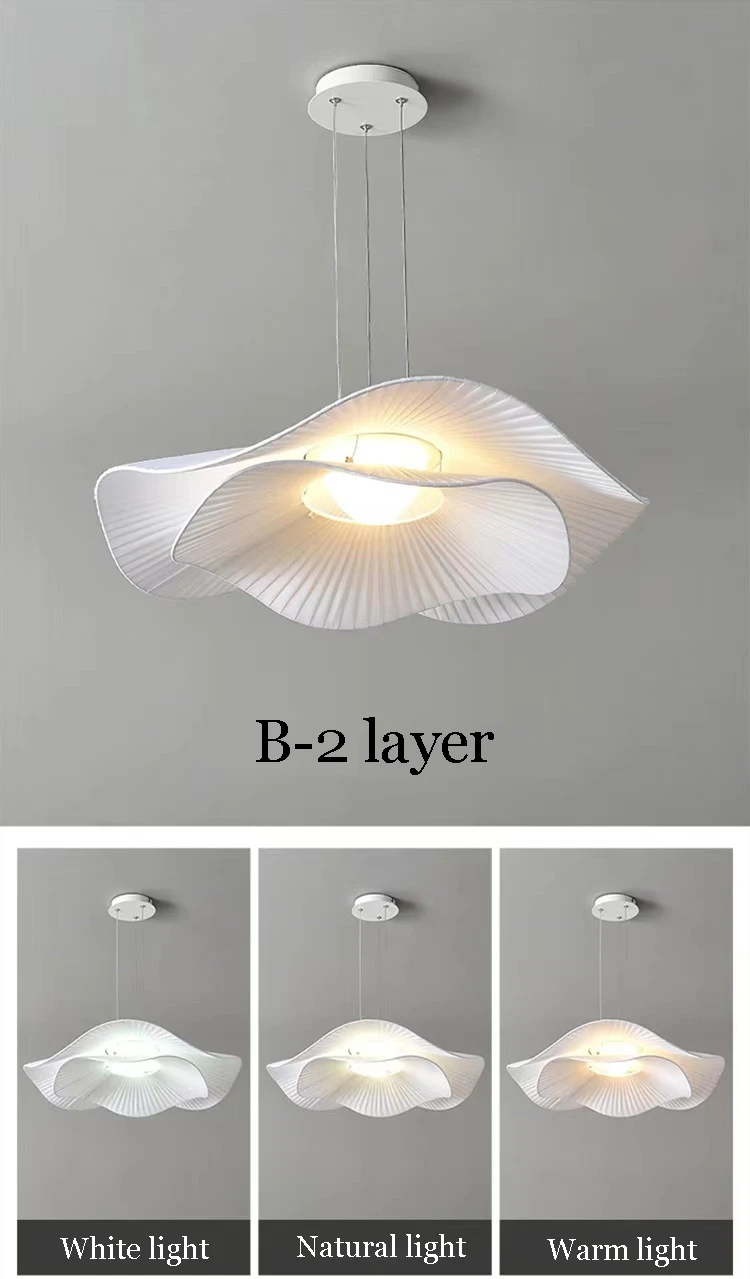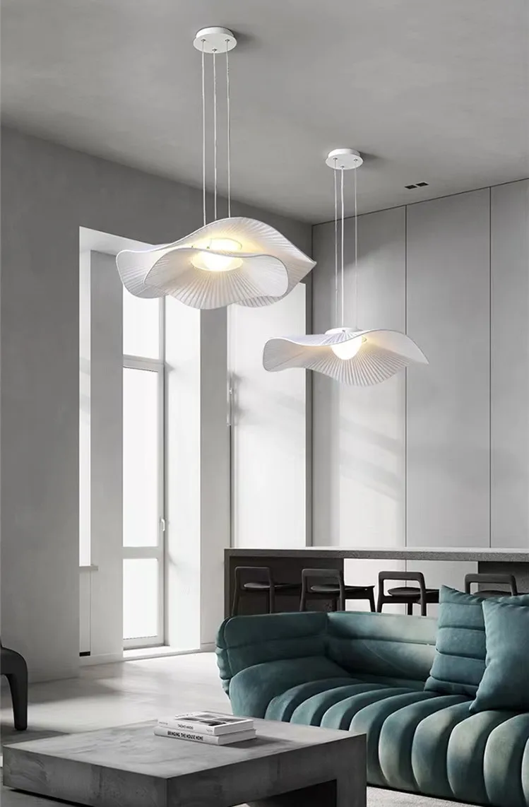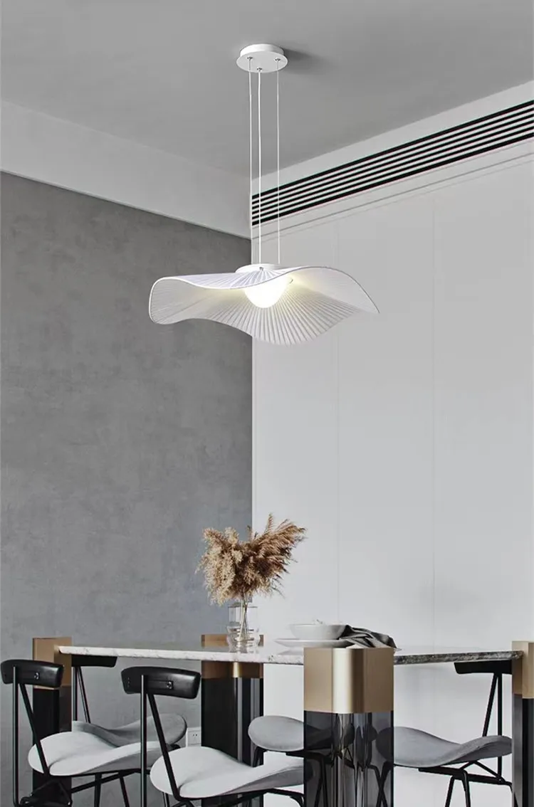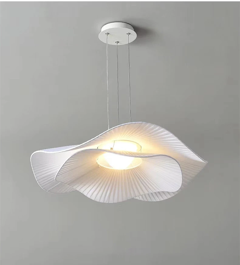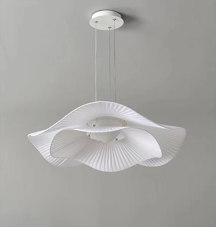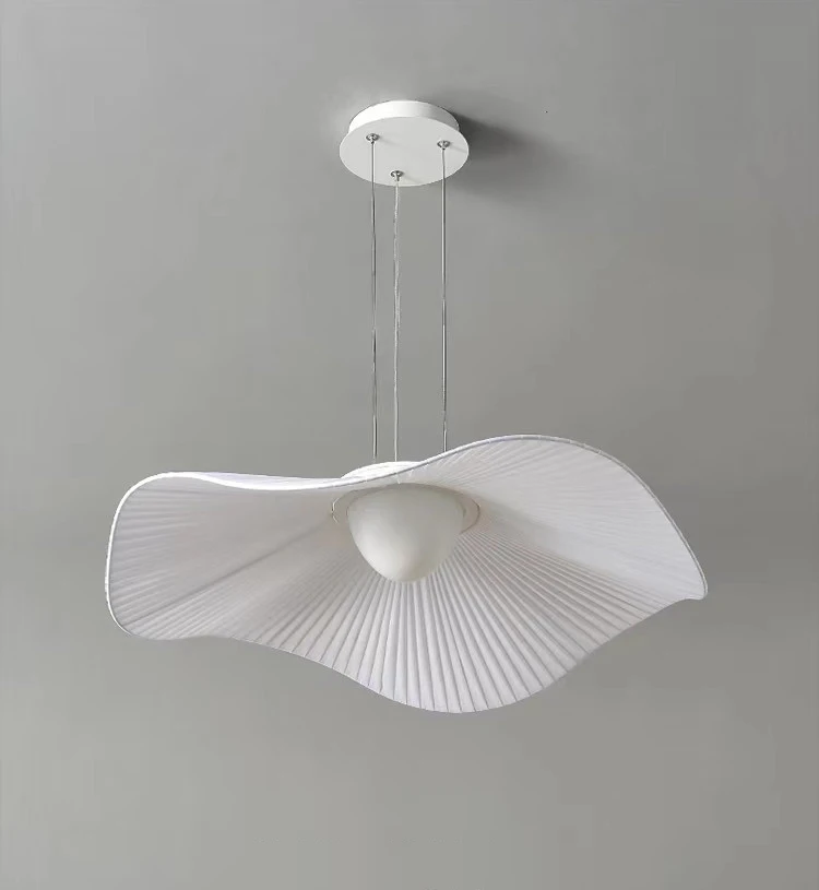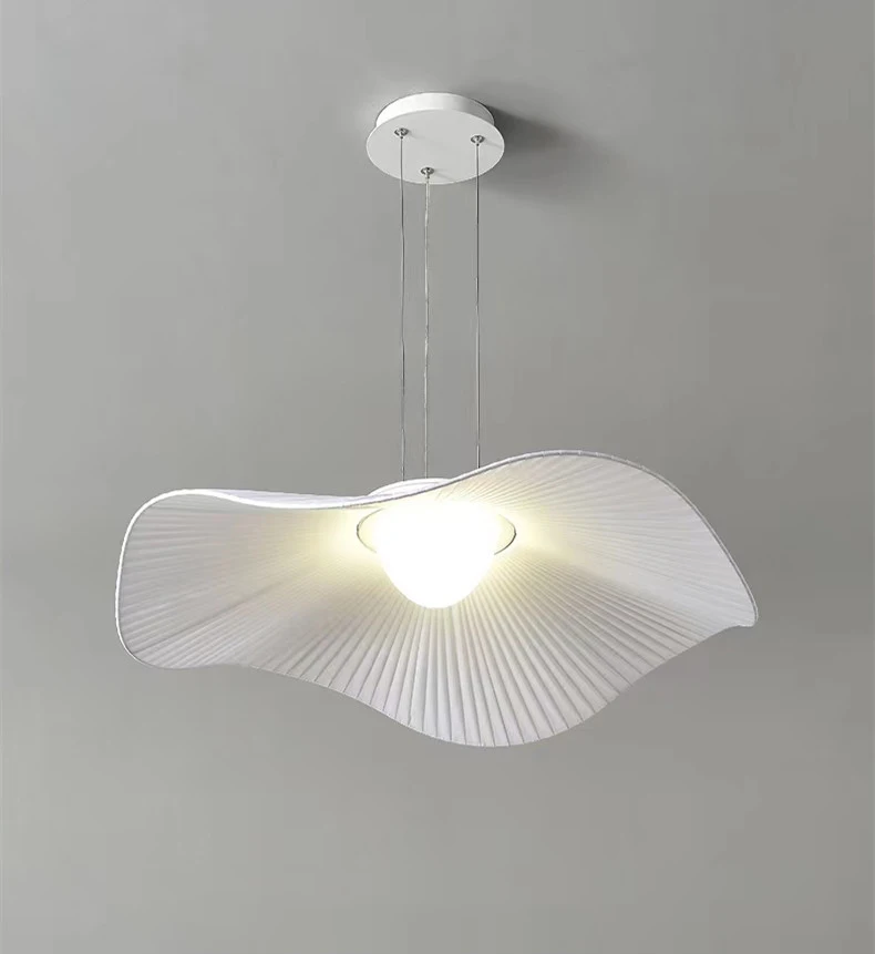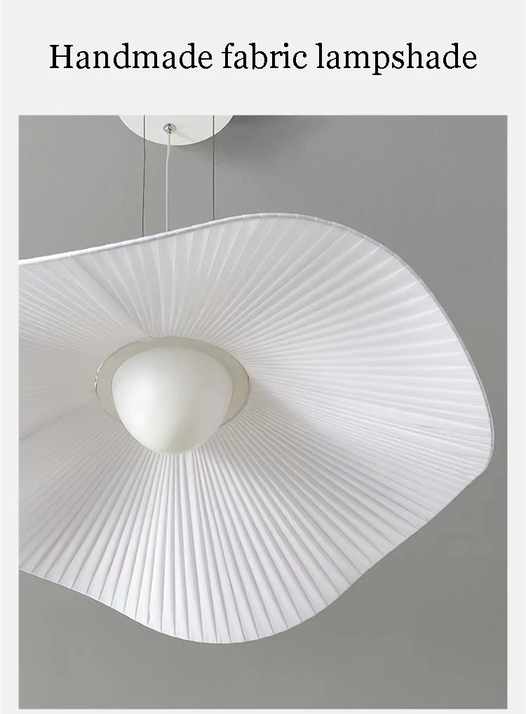 Modern Handmade Fabric Pendant Light – White Lampshade, LED Included