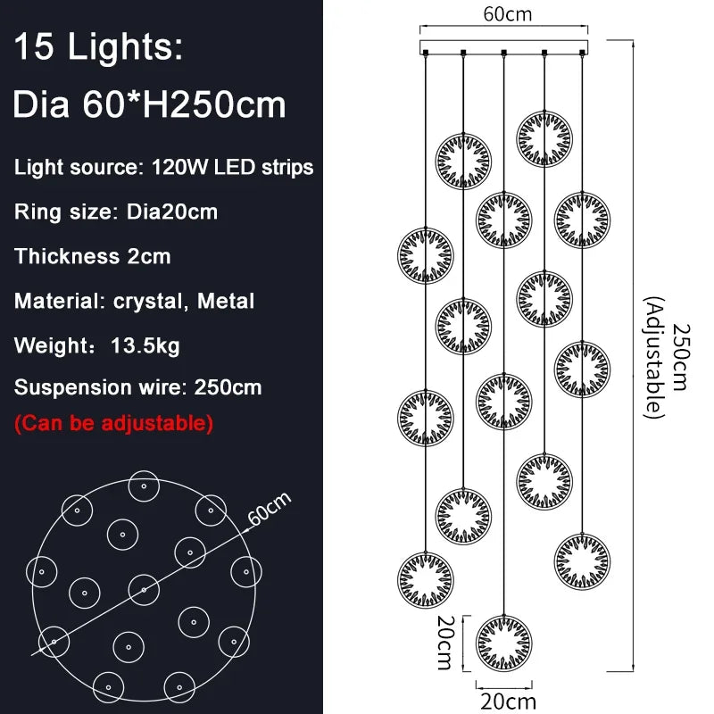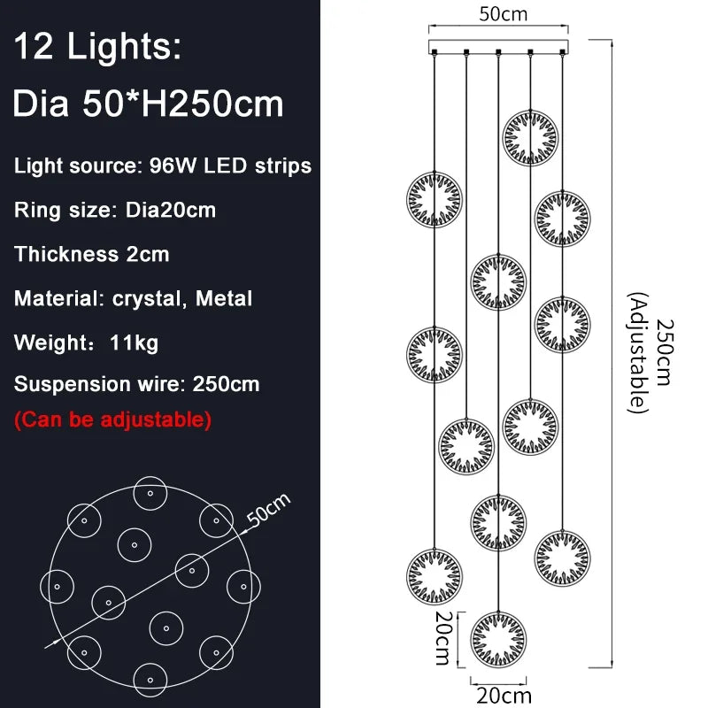 Perfect for dining rooms, living rooms, entryways, or high-ceiling spaces, it offers energy-efficient LED lighting and unmatched visual impact.