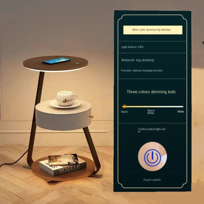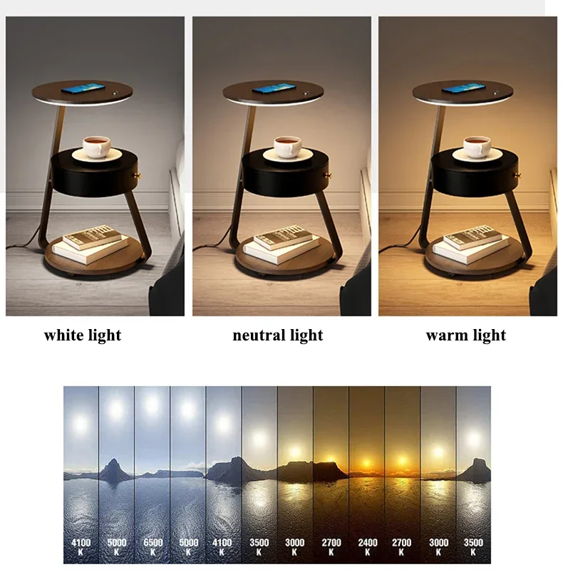 Intelligent Wireless Charging Coffee Table Lamp – Smart LED Light with Qi Charger & Touch Control