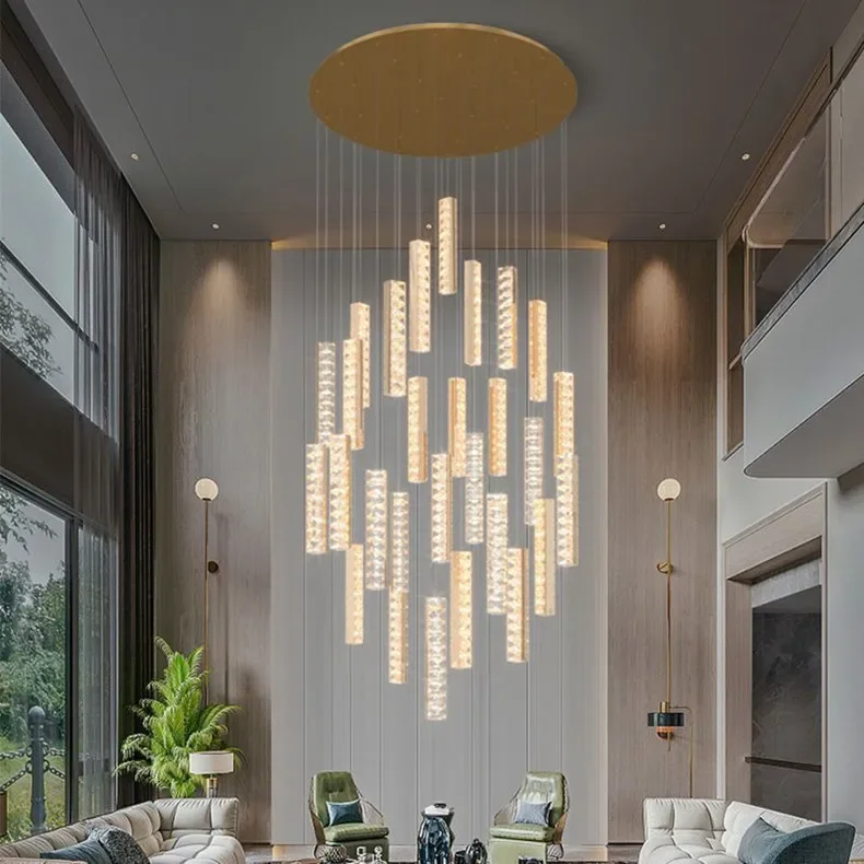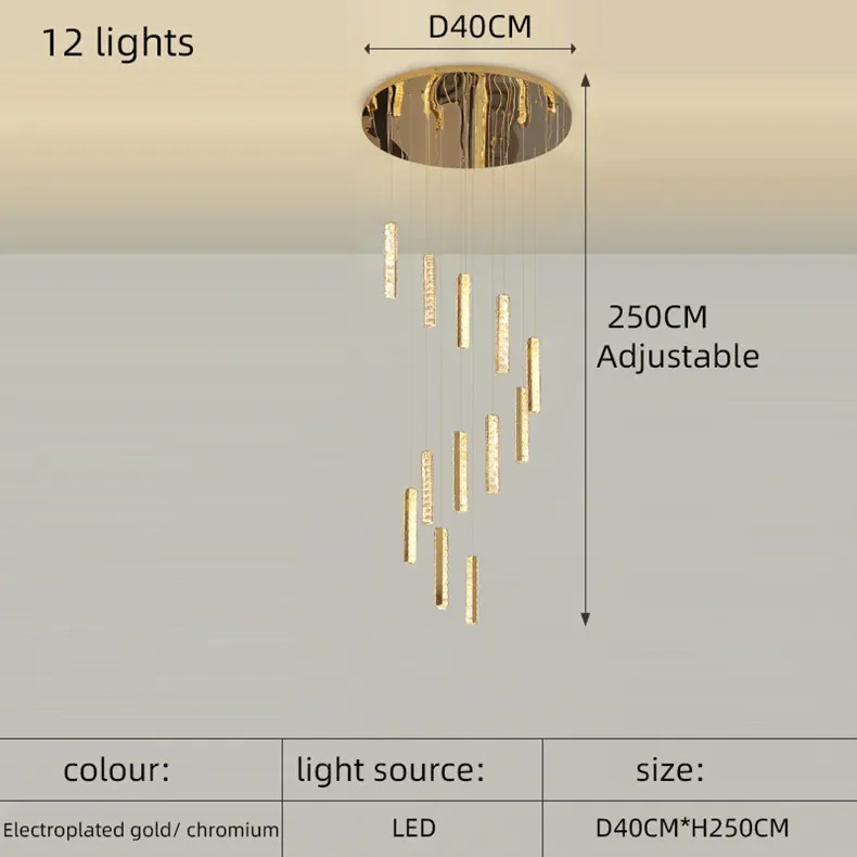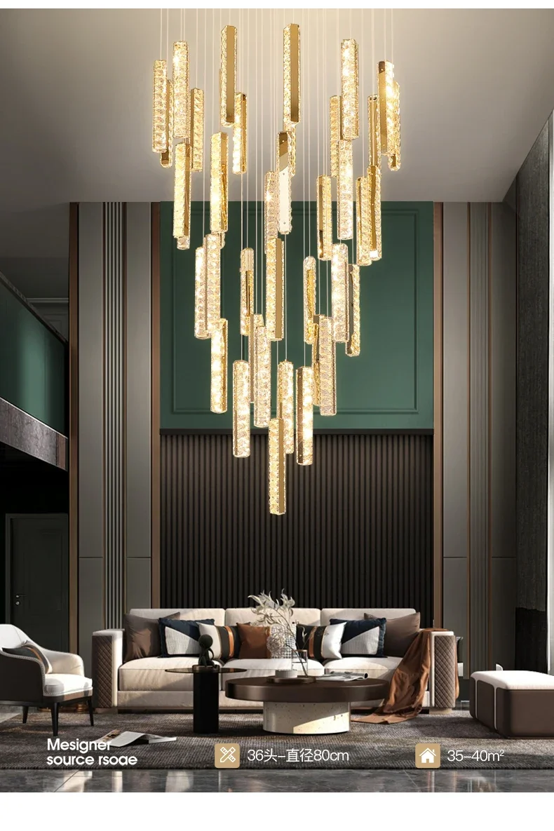 Luxury Nordic-style chandelier with LED lighting and gold or silver crystal accents. Perfect for elegant dining rooms, living spaces, or high-ceiling interiors.