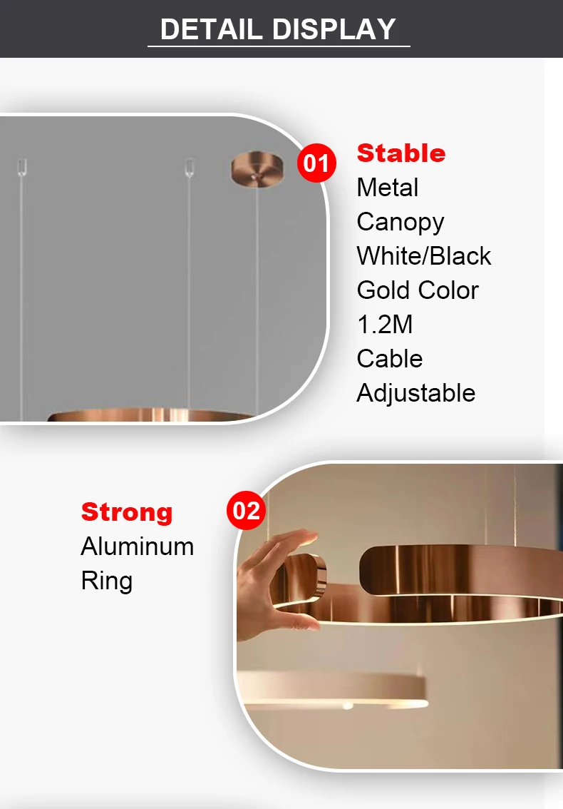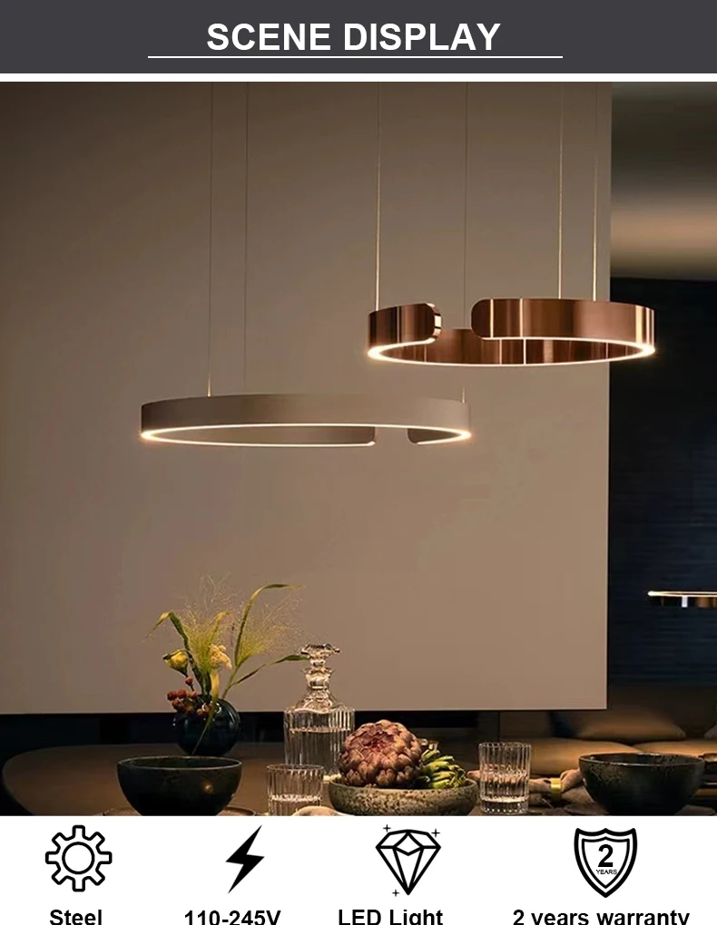Crafted with a matte-finish metal canopy and adjustable suspension cables, this light fixture lets you set the perfect height for your ceiling. Its minimalist ring form complements modern, Scandinavian, or transitional interiors, while its energy-efficient design ensures long life and low power use. Pair it with floor lamps, wall lights, or LED strip lights to create a layered scheme that showcases your interior design vision.