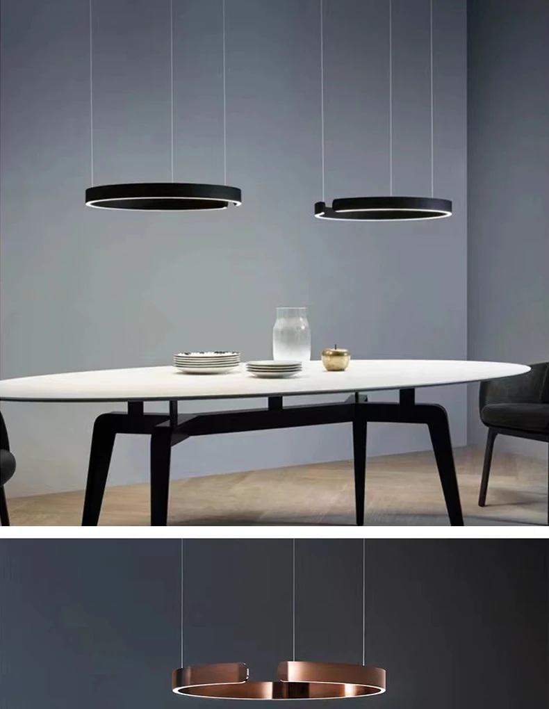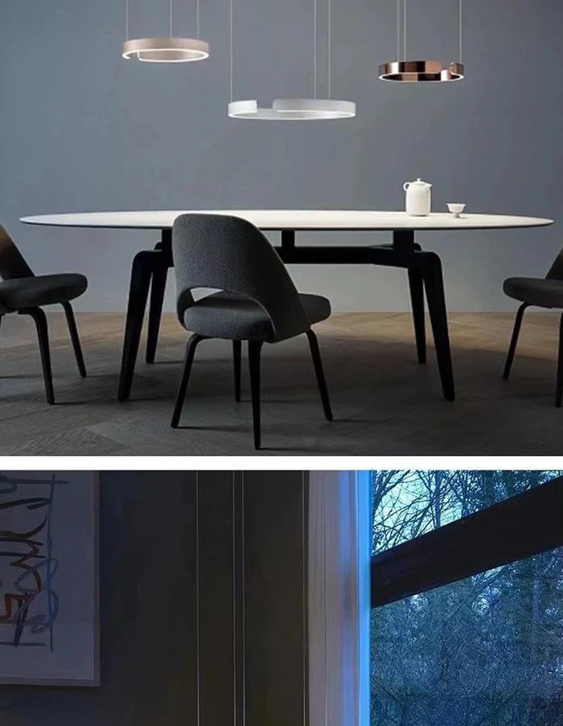 Discover the elegance of the Nordic Minimalist LED Ring Pendant Light—a sculptural pendant lamp that brings soft, uniform illumination to any room. The slim circular frame houses an integrated LED lamp, casting gentle, glare-free light ideal for both task lighting over a dining table and ambient accent in living areas.