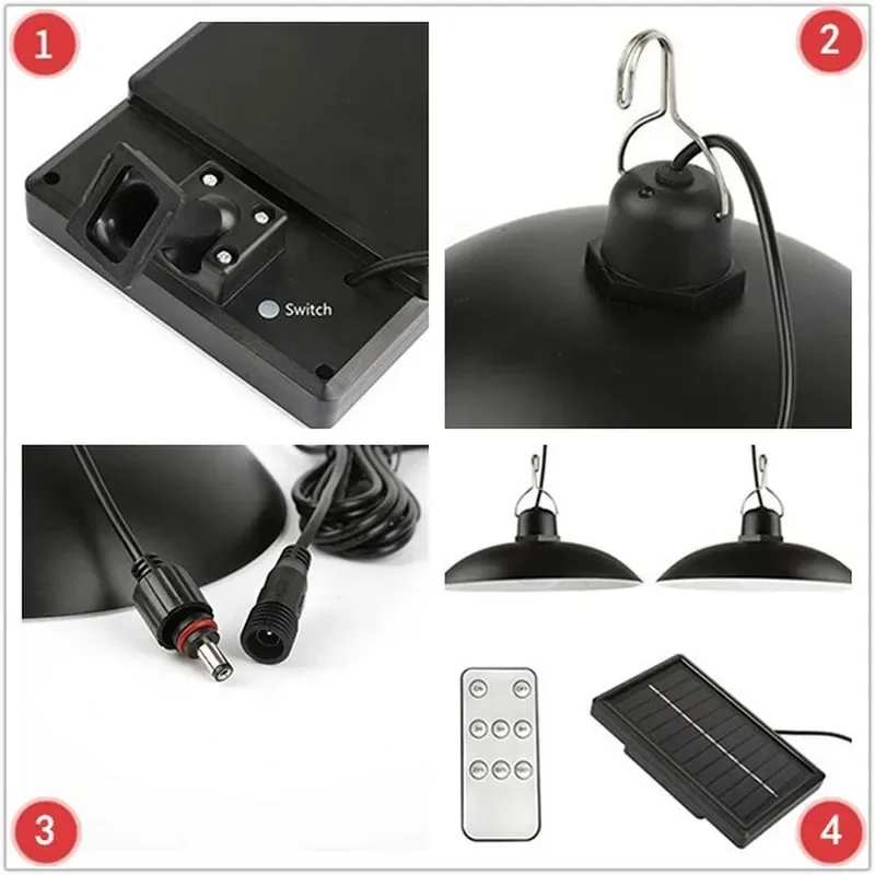 | Features | Solar Pendant Lights, Waterproof LED Lamp, Double-head Chandelier, Decoration with Remote Control, Suitable for Indoor Shed Barn Room |