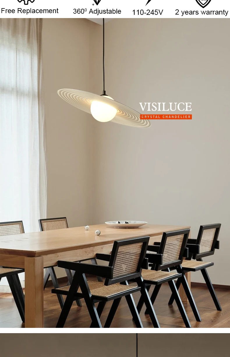 Elevate your décor with the Danish Flying Saucer LED Pendant Lamp, a minimalist light fixture inspired by mid-century modern design. Its smooth, disc-shaped canopy and frosted diffuser house a high-efficiency LED lamp, casting a uniform, glare-free glow. Perfect as pendant lights over kitchen islands or dining tables, it also shines as ambient ceiling lights in living rooms or hallways.