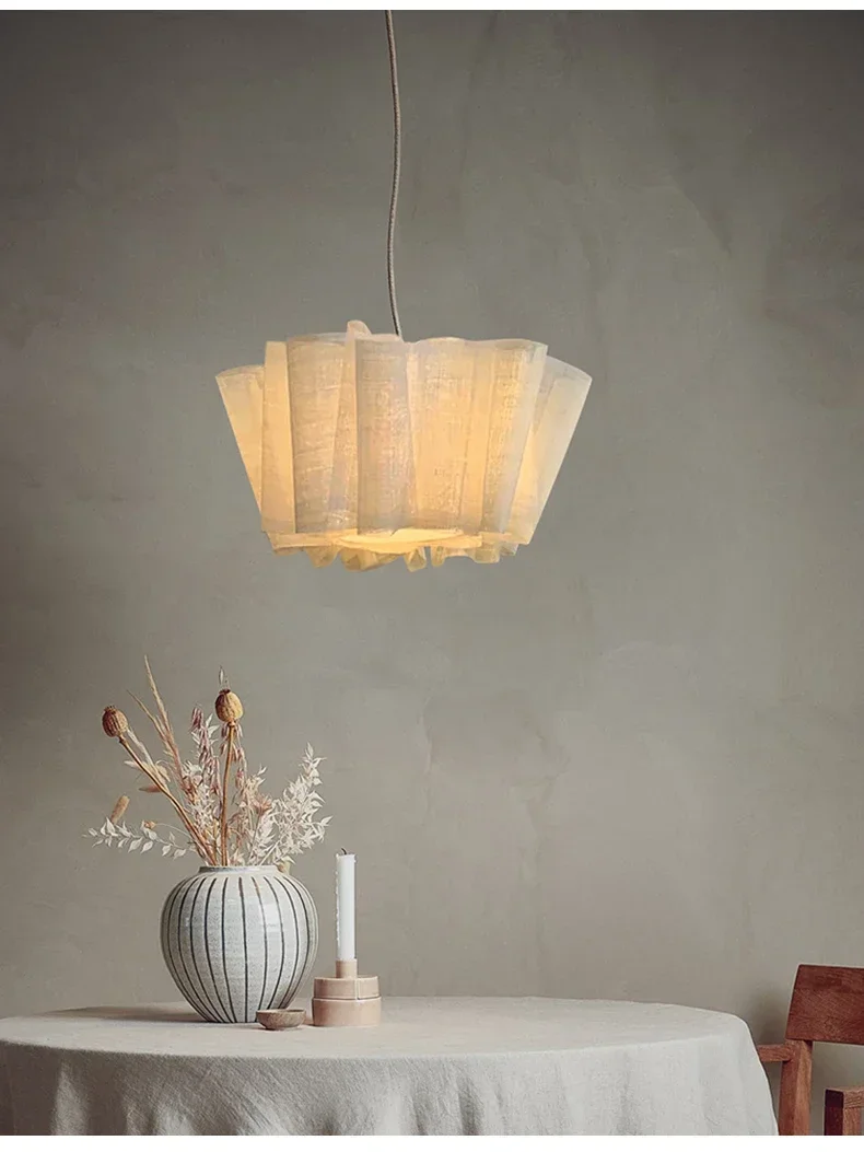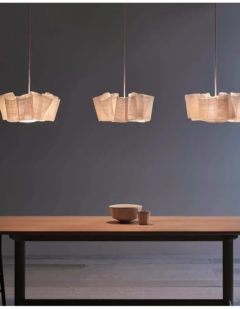 Japanese Wabi Sabi Handmade Fabric Lampshade LED Chandelier