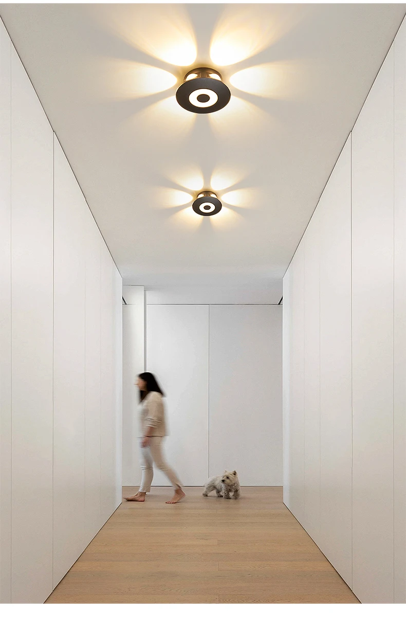 Modern black LED ceiling light for bedrooms, kitchens, or hallways. A stylish flush mount fixture offering energy-efficient ambient lighting for any room.