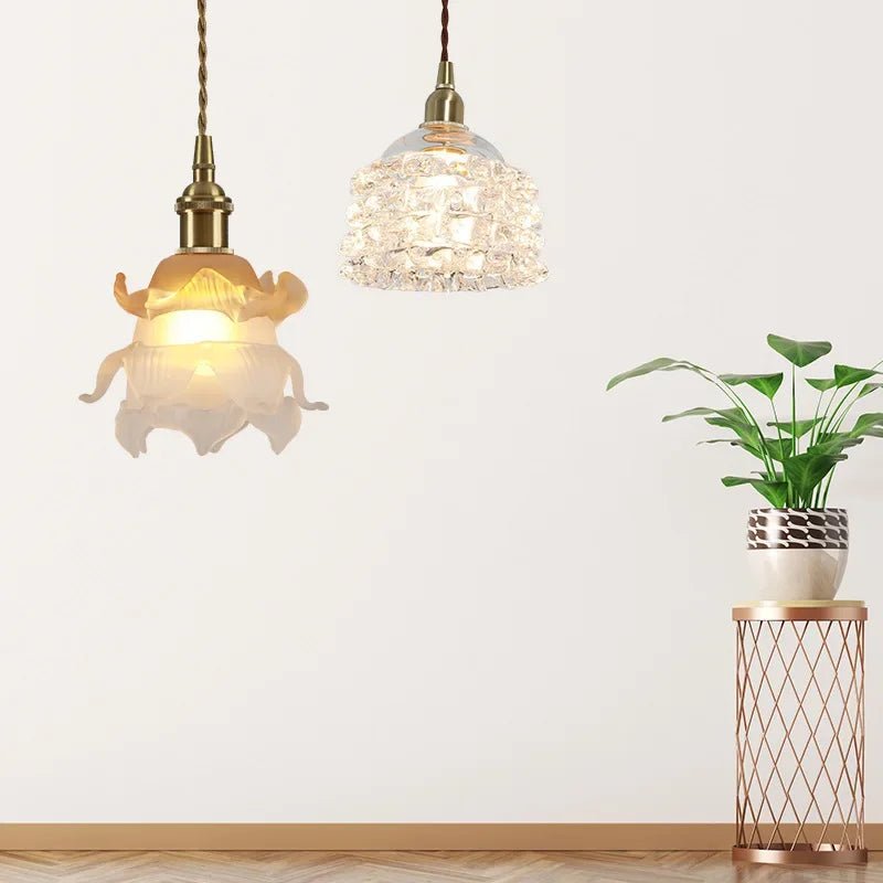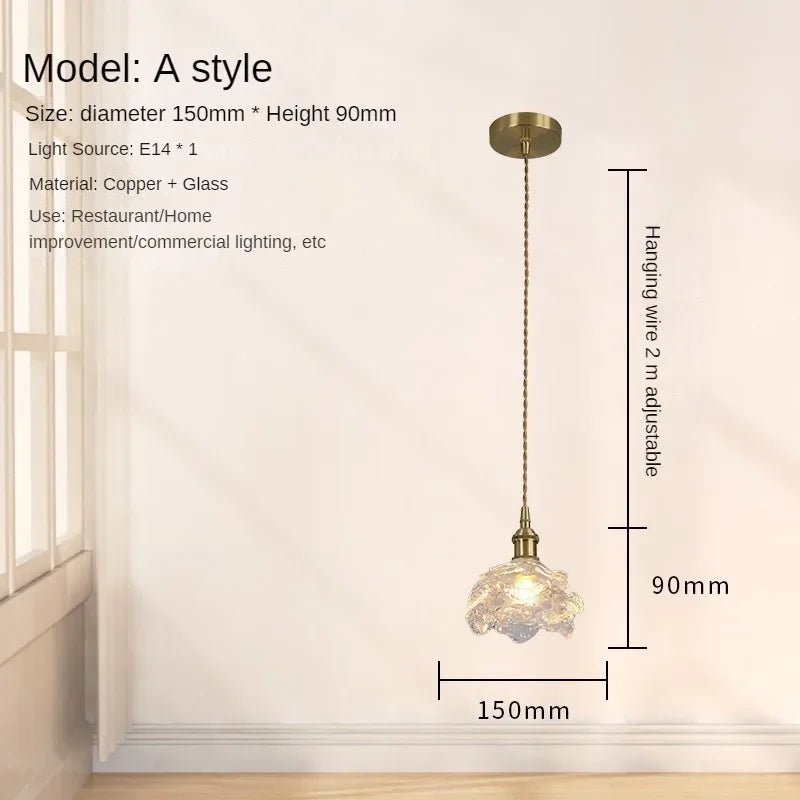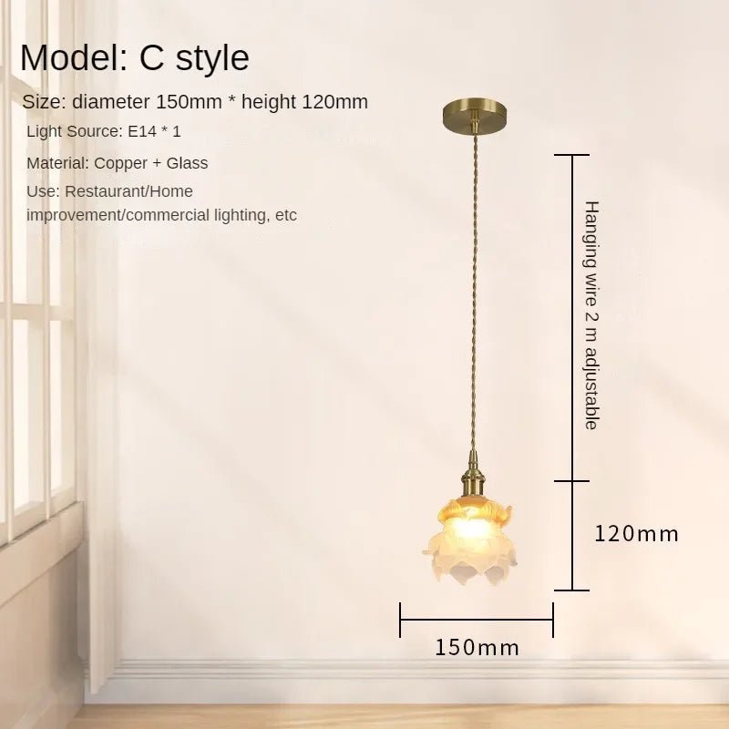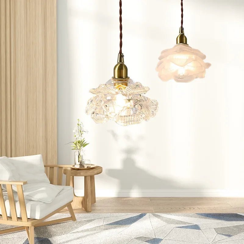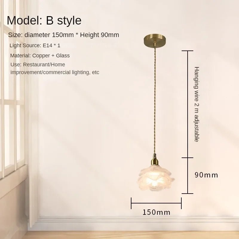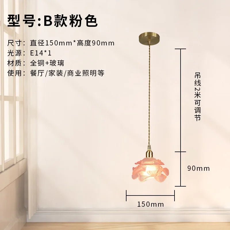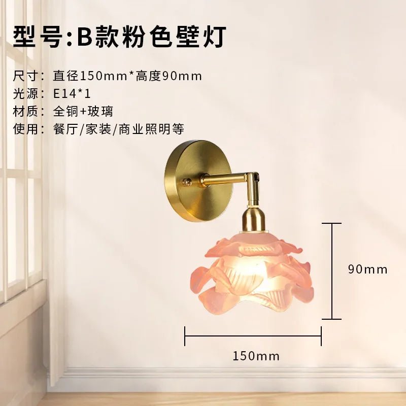 Romantic French-style glass light with rose petal design and all-copper frame. Elegant and timeless—ideal for bedrooms, dining rooms, or vintage decor.