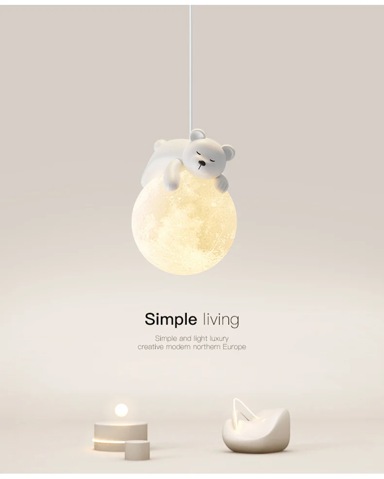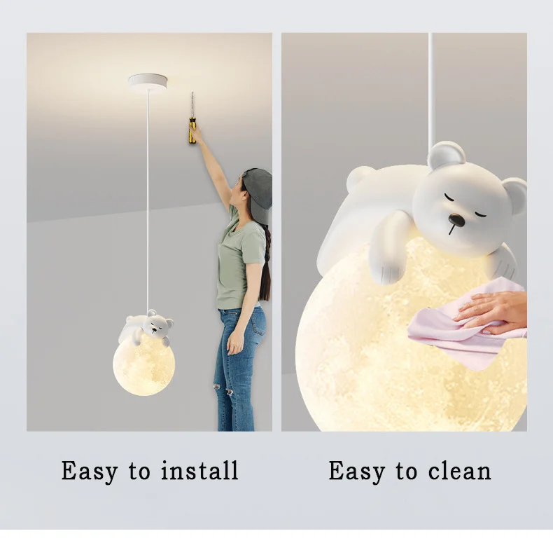 Little Bear Pendant Light – Kids LED Room Hanging Lamp