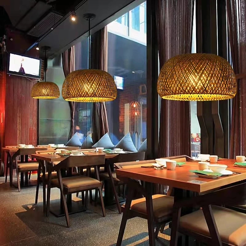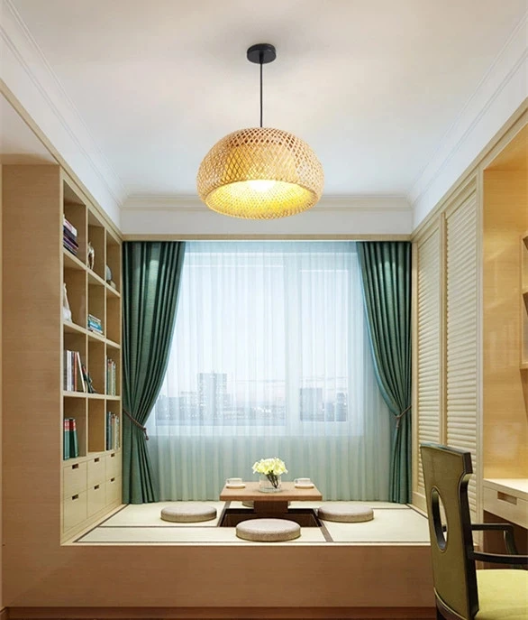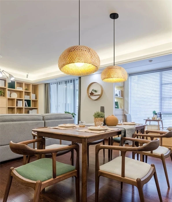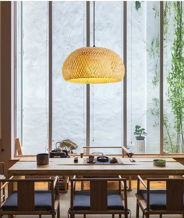 Eco-friendly bamboo LED pendant chandelier light fixture. Energy efficiency, warm color temperature & decorative light styles—perfect for dining rooms & home décor.