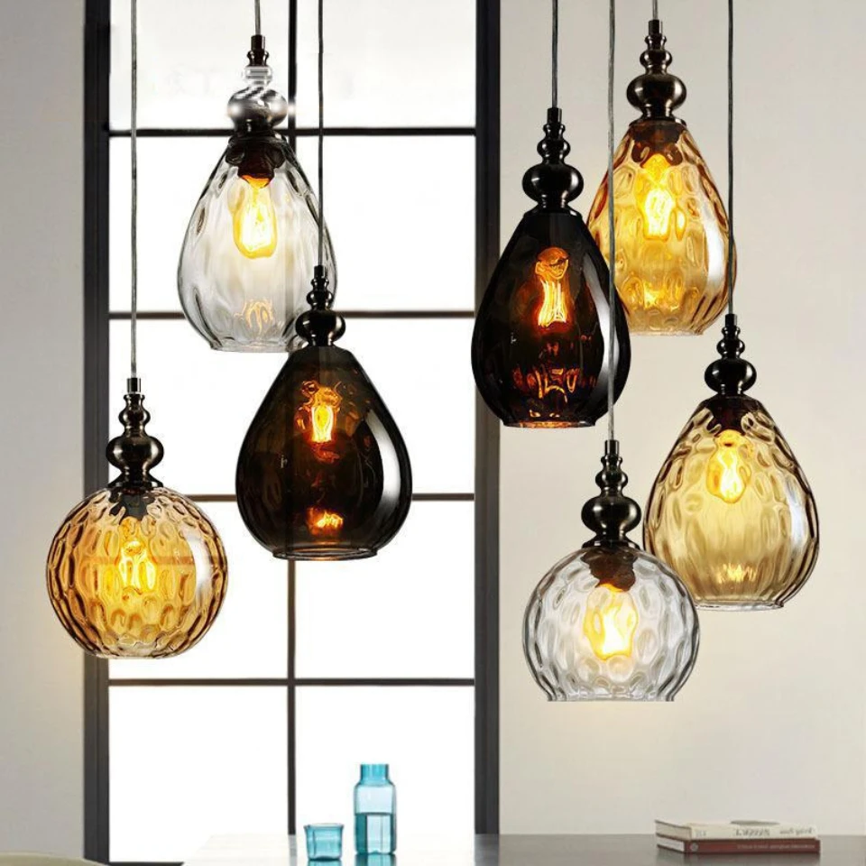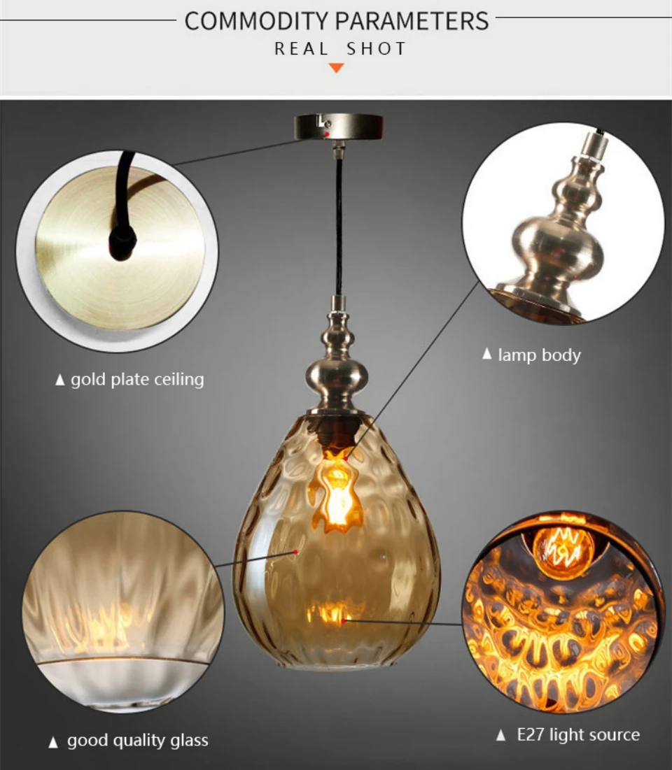 This Nordic retro pendant light features unique water ripple luster glass that creates mesmerizing light patterns. Perfect for: