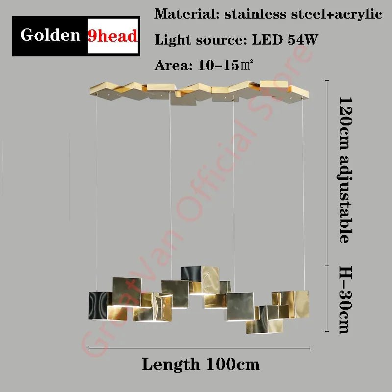 Post-Modern Magic Cube Pendant Lamp - Gold Lamp Body / 9 Head - L100cm / Warm Light No Remote is backordered and will ship as soon as it is back in stock.