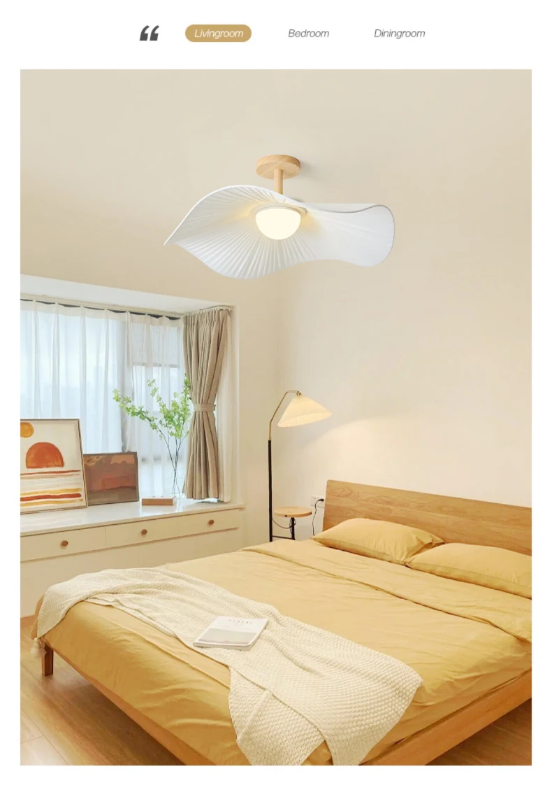 Stylish solid wood LED chandelier with acrylic and fabric shades. Flush mount installation, LED bulbs included, perfect for dining rooms, living rooms, bedrooms, and bars.