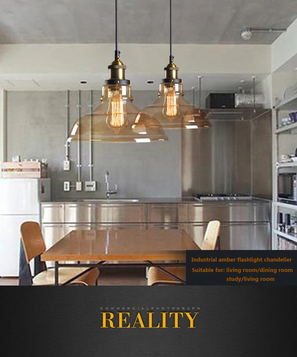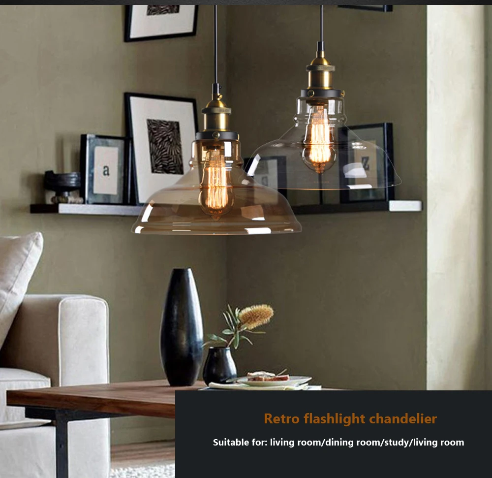 The Vintage Pendant Light with Glass Shade brings timeless elegance to any interior. Designed to showcase the charm of Edison-style bulbs, this glass hanging lamp is ideal for kitchen islands, dining rooms, living spaces, cafes, and more.