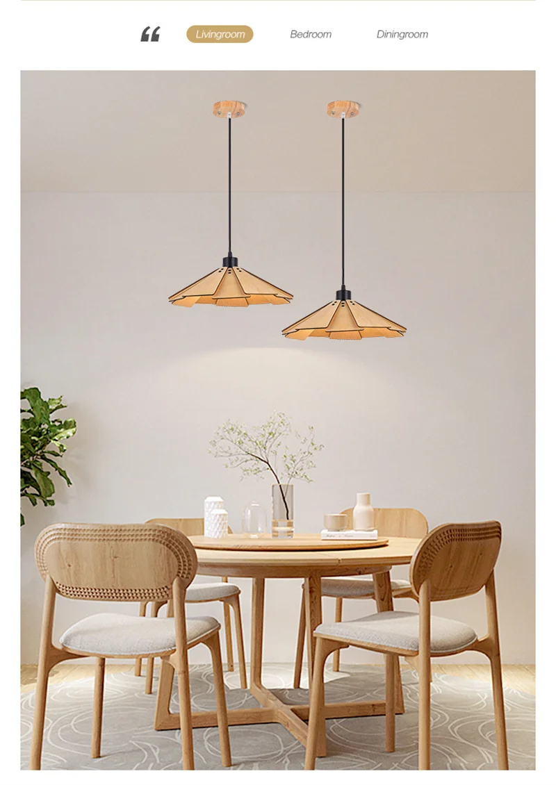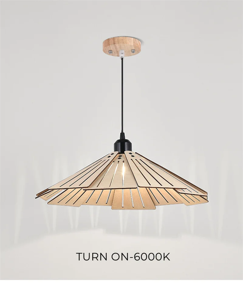 With its clean pendant silhouette and Nordic-inspired structure, this lighting option serves beautifully as a statement piece above a dining table or living space. Its warm wood tone pairs effortlessly with neutral palettes and modern home decor.