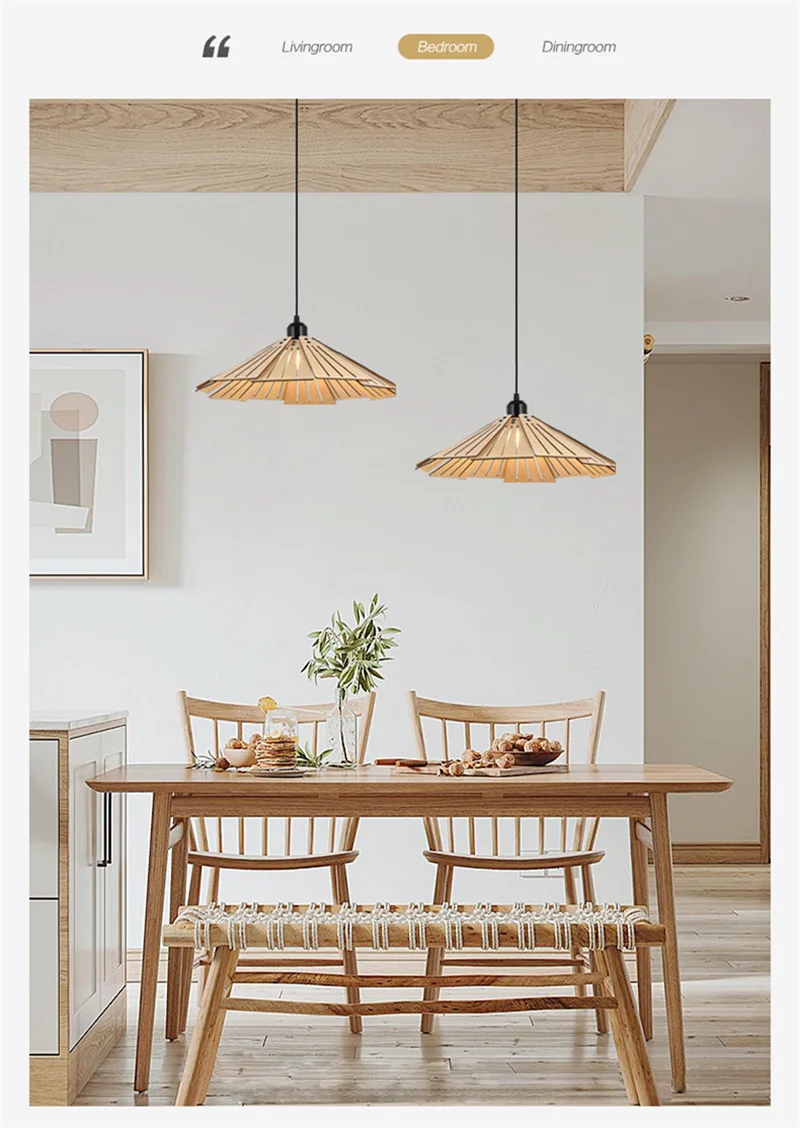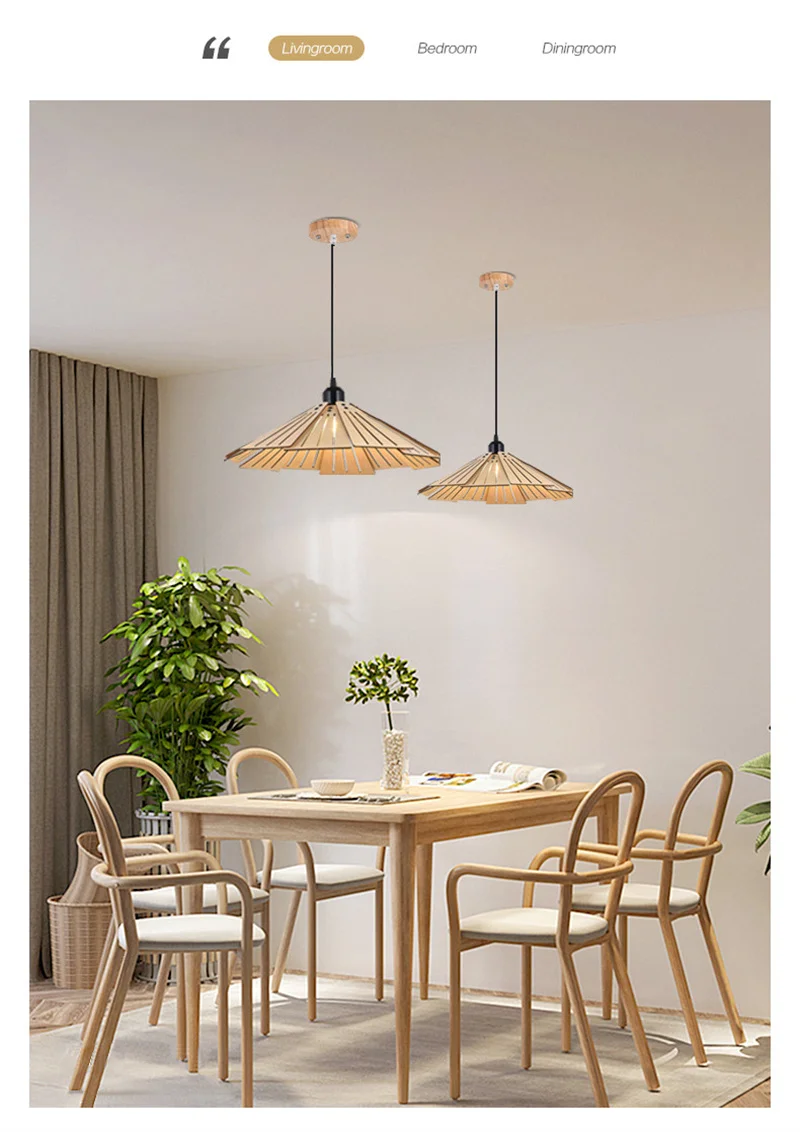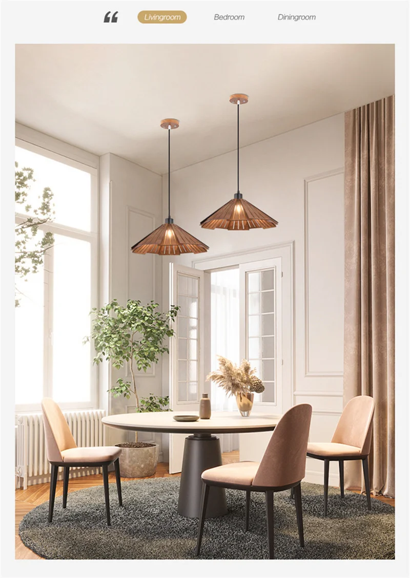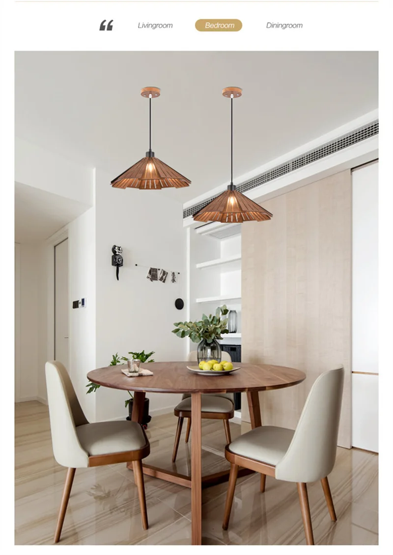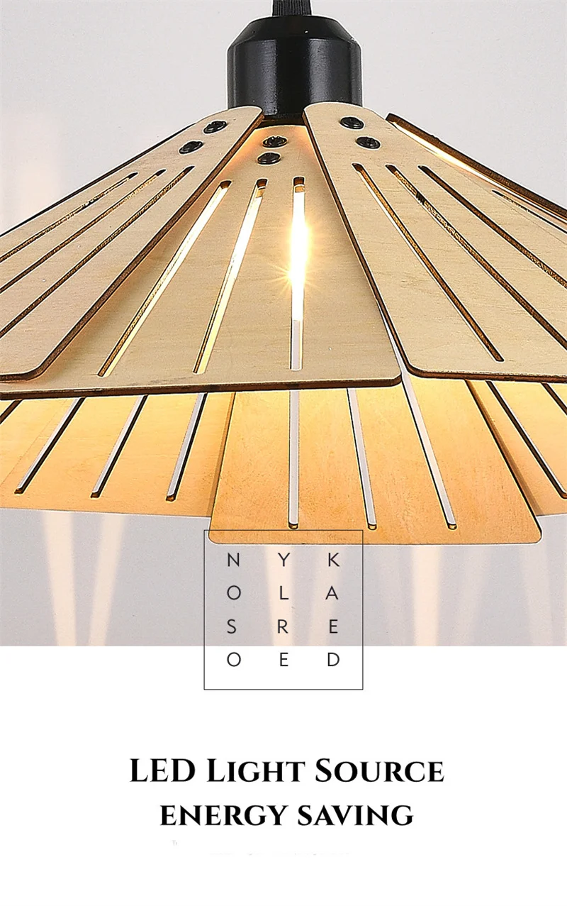 Features | LED Restaurant Pendant Lamp, Retro Dining Room Bar Droplight, E27 Vintage Hanging Lamps, Pendant Light for Kitchen, Nordic Wooden Chandelier |