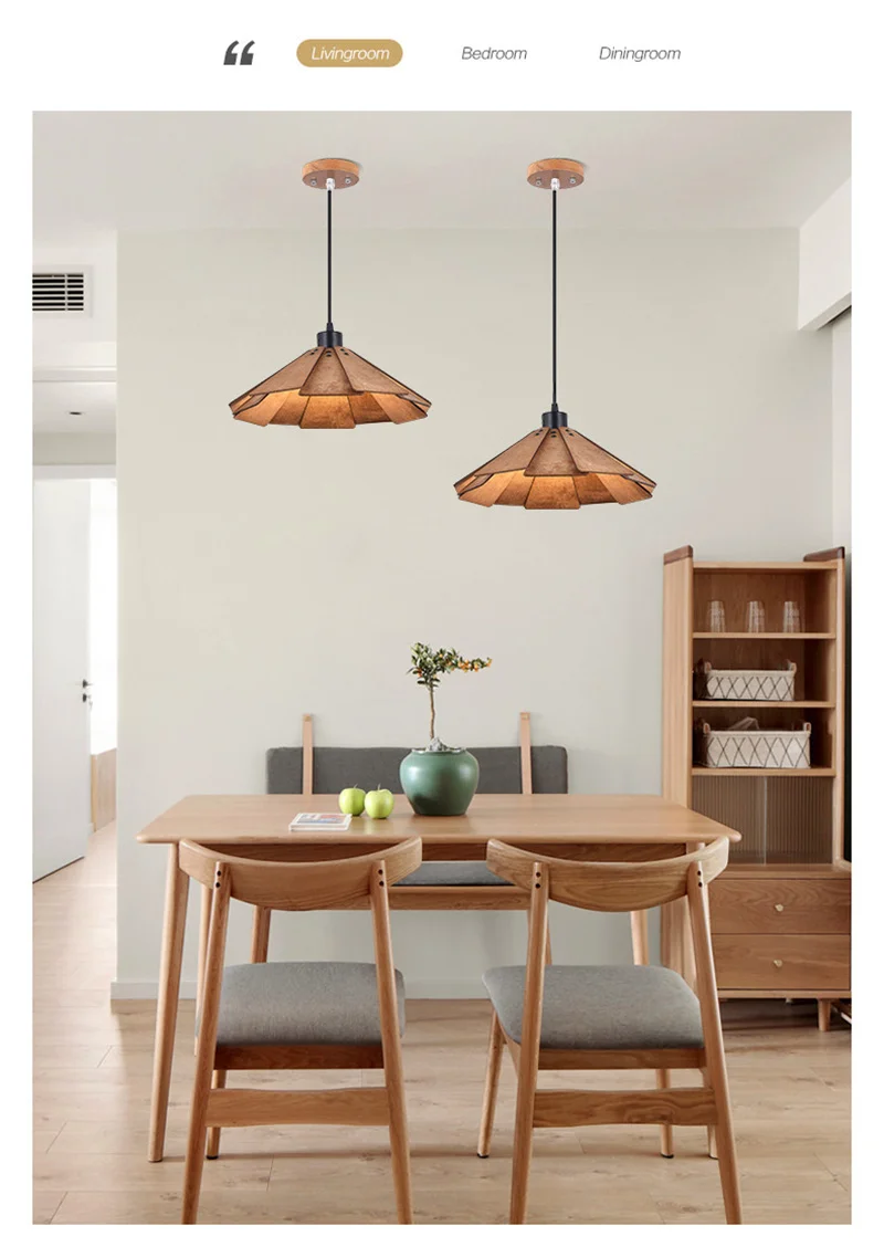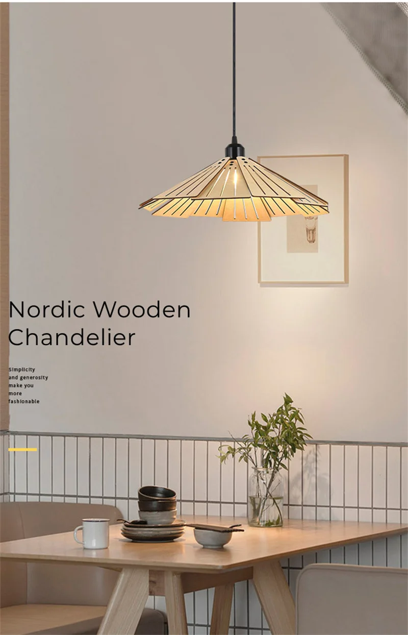 Warm up your space with this wooden Nordic pendant chandelier. A minimalist lighting option with LED compatibility, perfect for dining rooms and modern interiors.