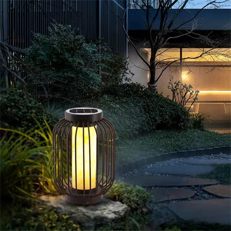 Layered schemes with solar lanterns, exterior wall lamps, or post lamps