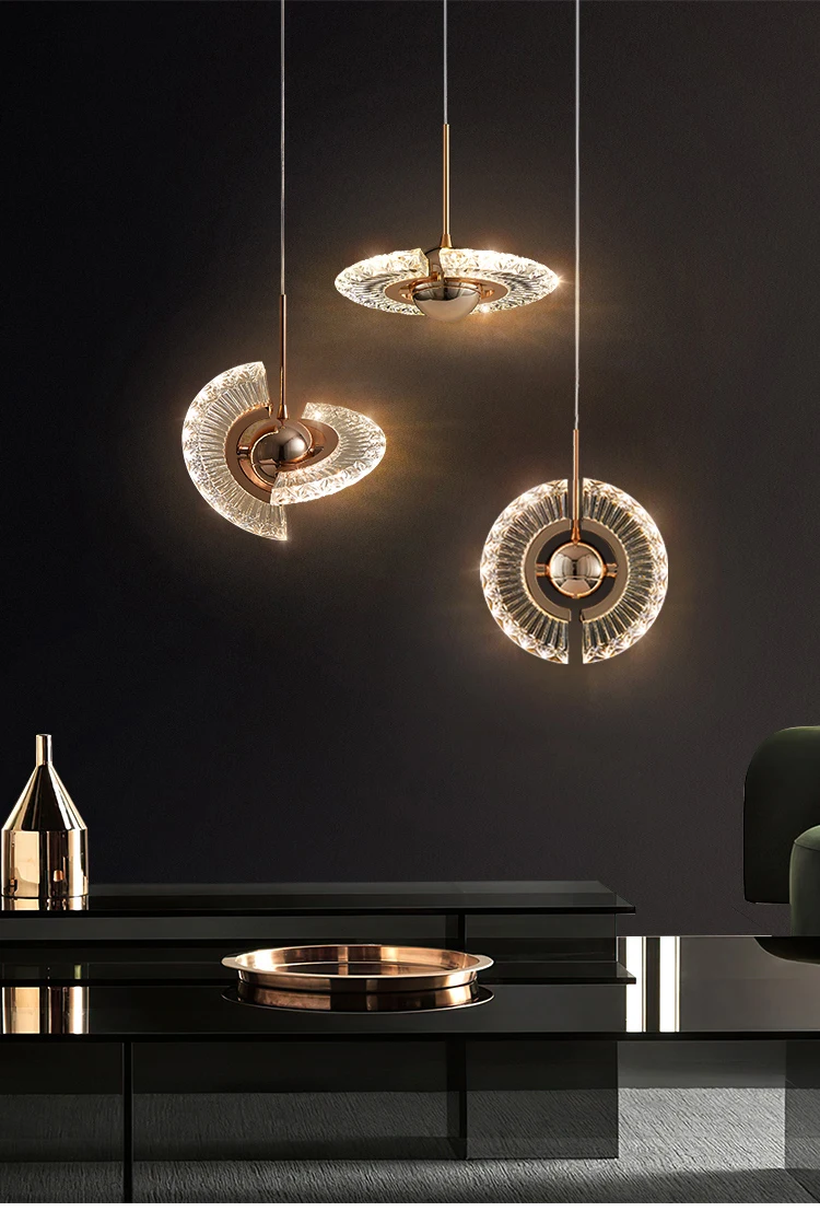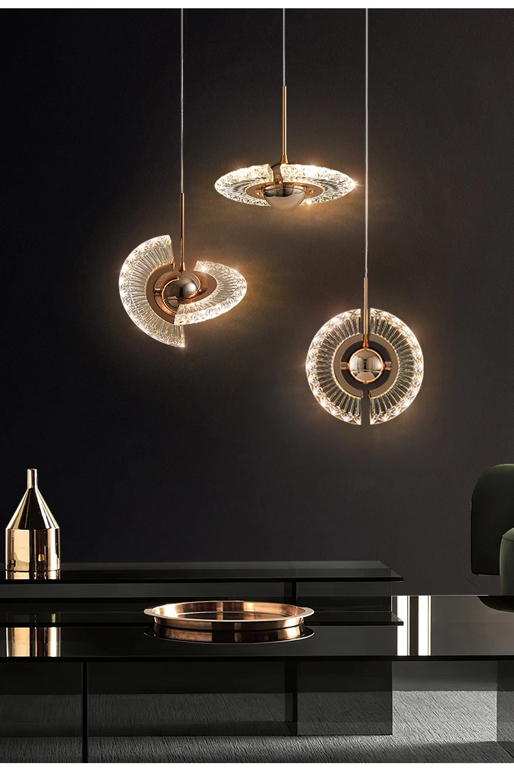 Elegant acrylic and crystal LED pendant light. A modern light fixture offering warm, energy-efficient illumination—perfect for dining rooms, kitchens, or living areas.