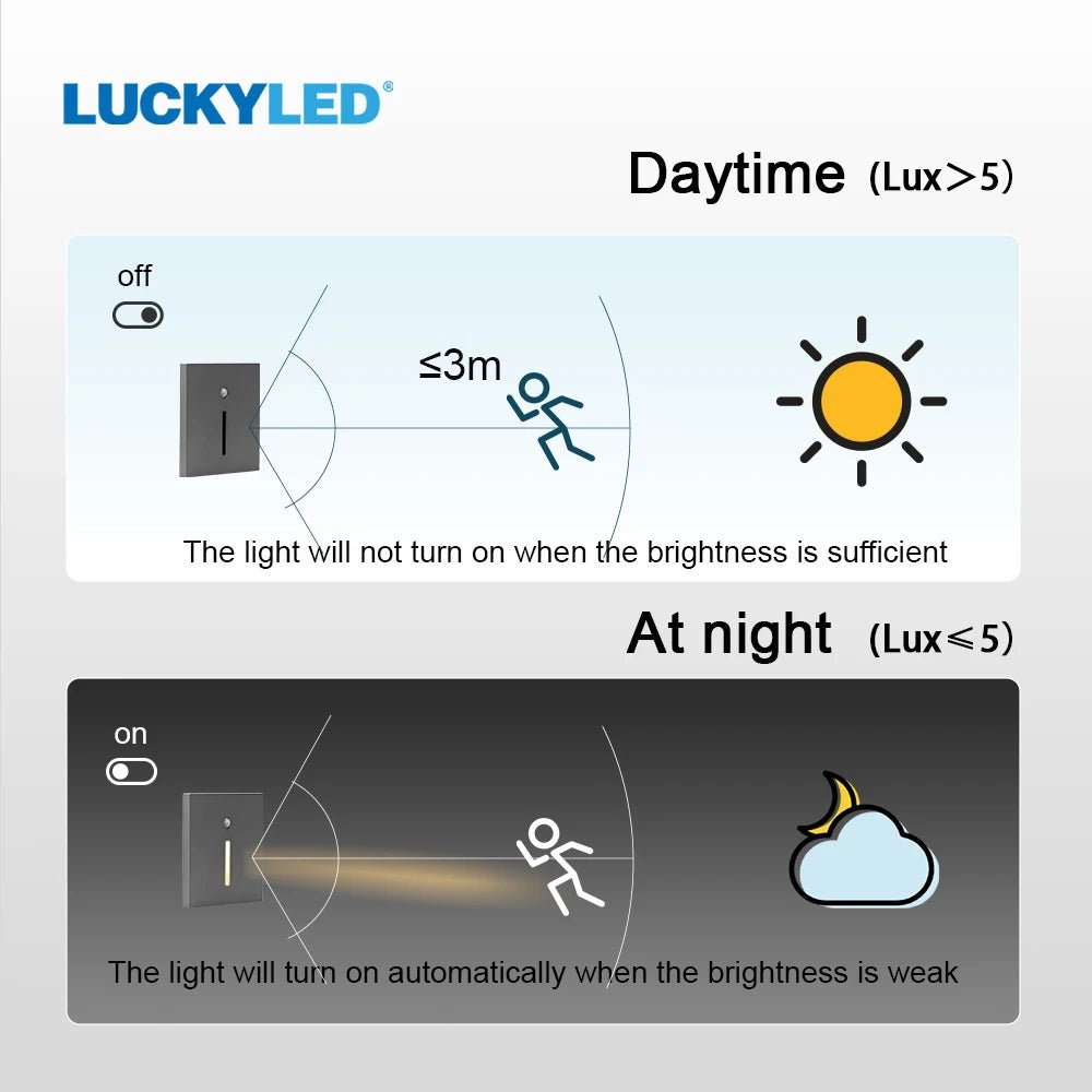 Illuminate your staircases and corridors effortlessly with the LUCKYLED L1SL-R LED Stair Light. This modern recessed fixture features a built-in PIR sensor that detects motion, automatically turning on the light when needed, and off after 25–30 seconds, optimizing energy efficiency and convenience.