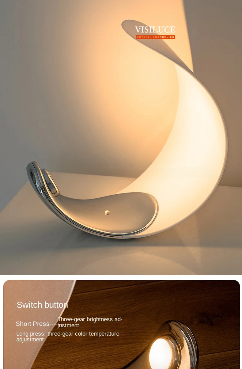 Illuminate your space with the Touch Control Moon Dimming LED Table Lamp, a sculptural light fixture that blends functional task lighting with artistic form. The lamp’s curved “moon” silhouette houses a soft LED panel you can dim through seamless touch controls—no bulky dimmers or remotes needed.