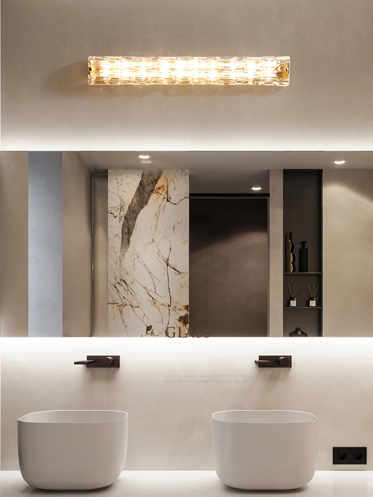 Elegant Italian-style copper and glass luxury LED wall lamp. A modern wall light fixture perfect for bedrooms, hallways, or covered outdoor spaces.