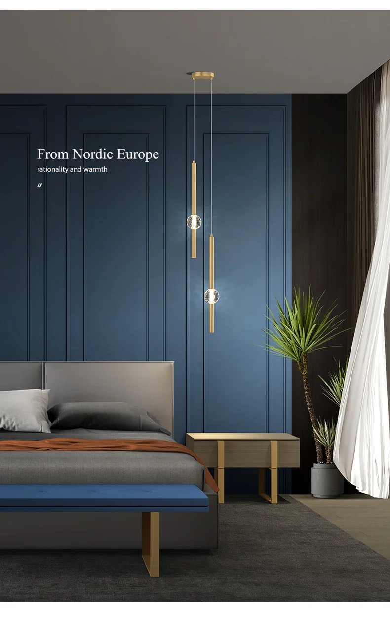 Illuminate your space with a Nordic Crystal LED Chandelier. This modern, minimalist ceiling light adds elegant sparkle to dining rooms, living rooms, and more.