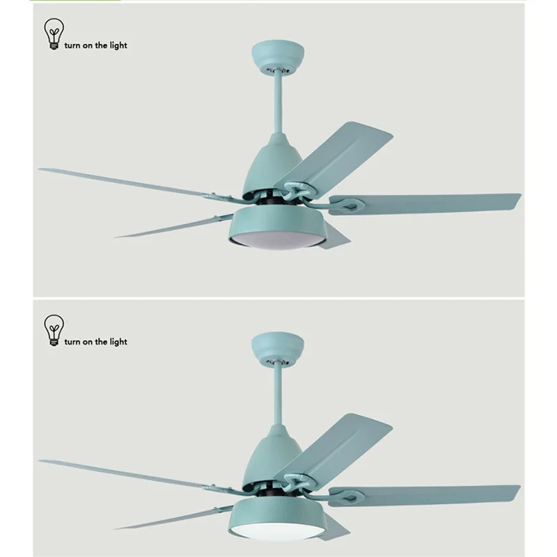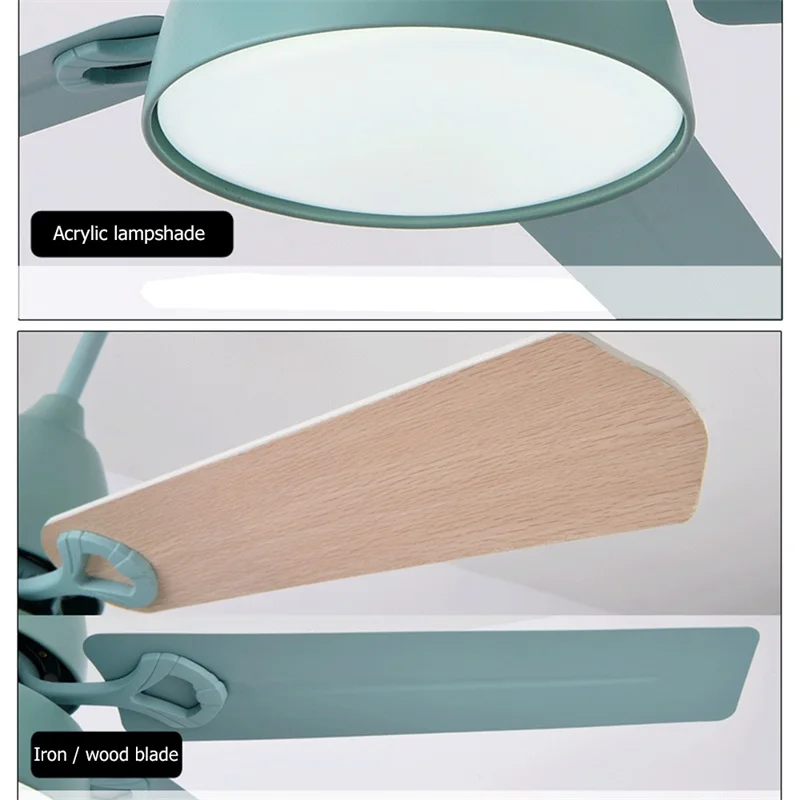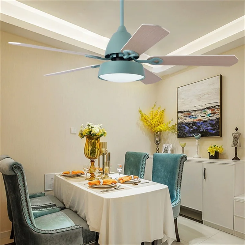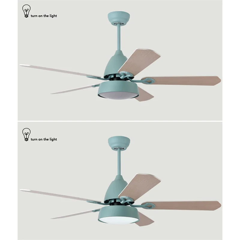 Ventilador de techo moderno con aspas de madera natural, luz LED integrada y control remoto para ajustar fácilmente el ventilador y la luz. Eficiente energéticamente, perfecto para dormitorios y salas de estar.
