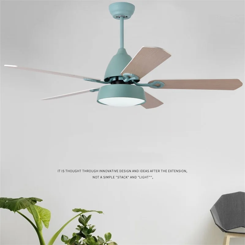 Ventilador de techo moderno con aspas de madera, luz y control remoto
