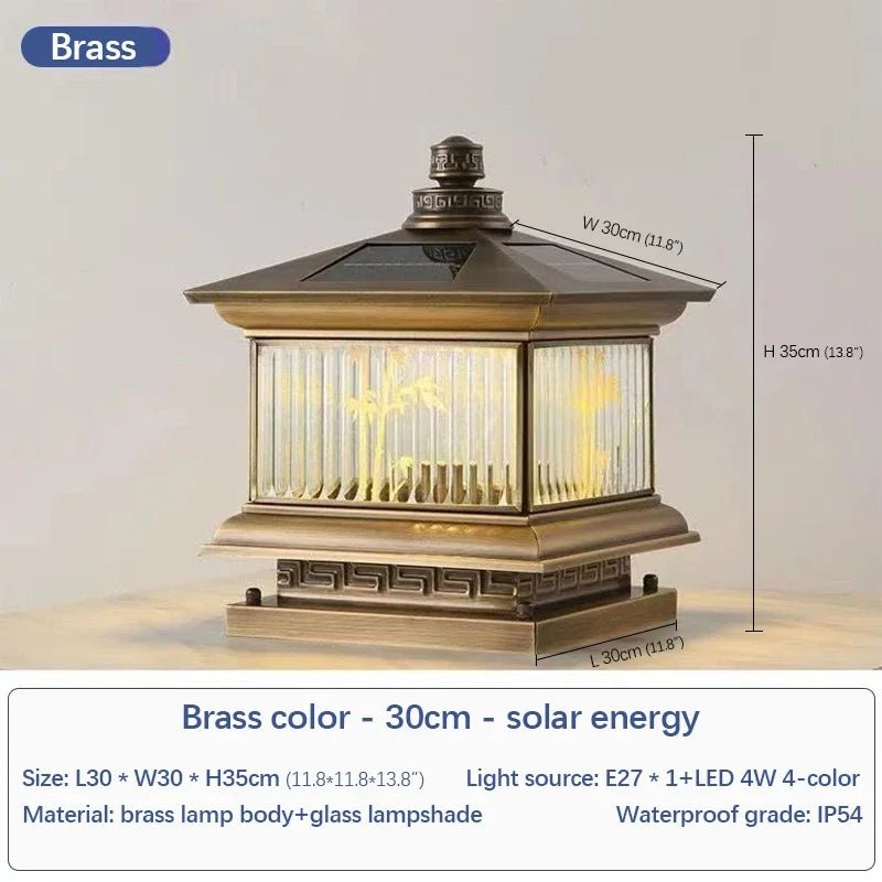 Lámpara solar de poste para exteriores de latón creativo