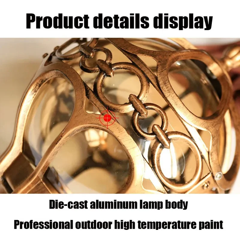 Dale un toque de encanto vintage a tu espacio exterior con esta lámpara colgante LED retro europea . Diseñada para ofrecer estilo y funcionalidad, esta lámpara resistente a la intemperie crea una luz cálida y acogedora, perfecta para patios, porches y zonas de estar en el jardín.