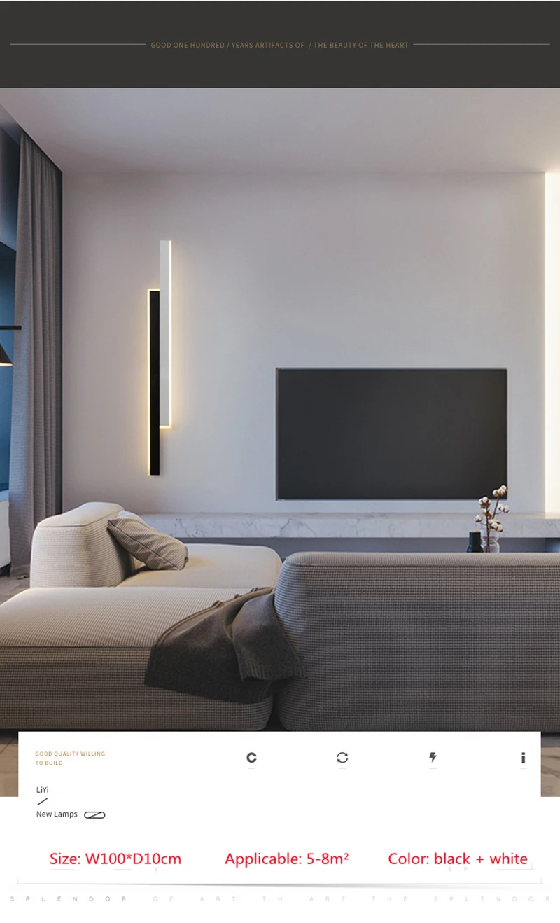 Lámpara de pared LED nórdica moderna y sencilla, larga