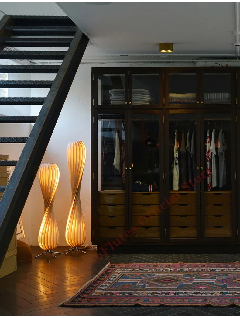 New Retro Wabi Sabi Wooden Floor Lamp – Minimalist Standing Light for Japandi Interiors
