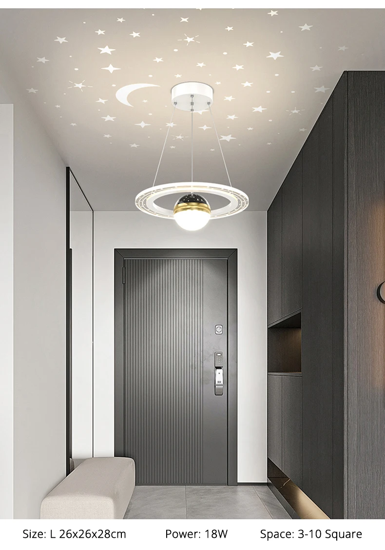 Transform your space with this starry projection LED ceiling light. Featuring an acrylic glass ball and ambient glow—perfect for bedrooms and cozy interiors.