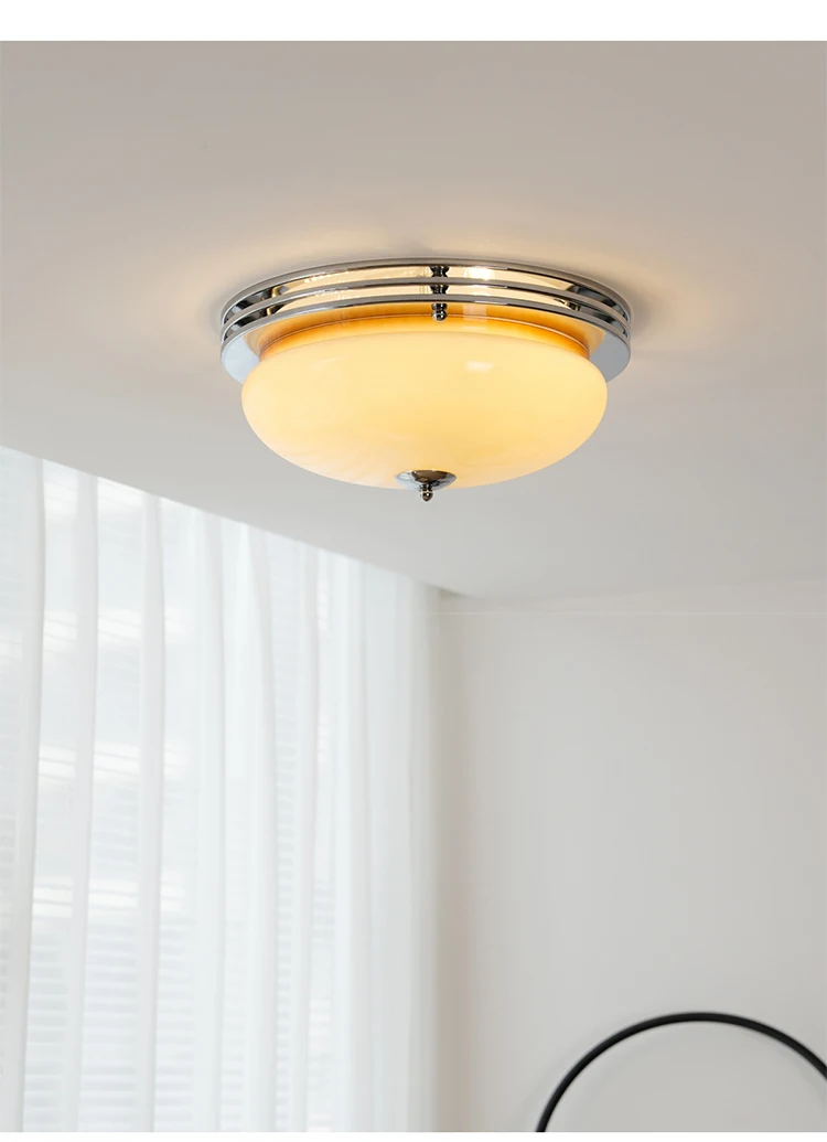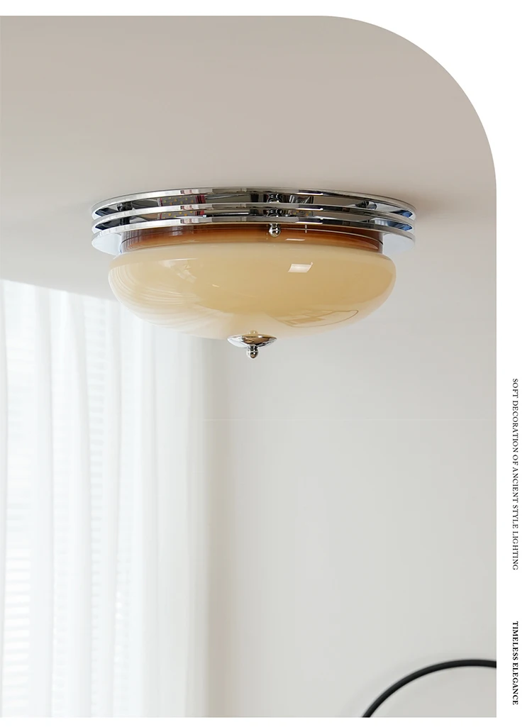 The clean lines and subtle color palette make this ceiling light a sophisticated statement piece that adds warmth and style to your home.