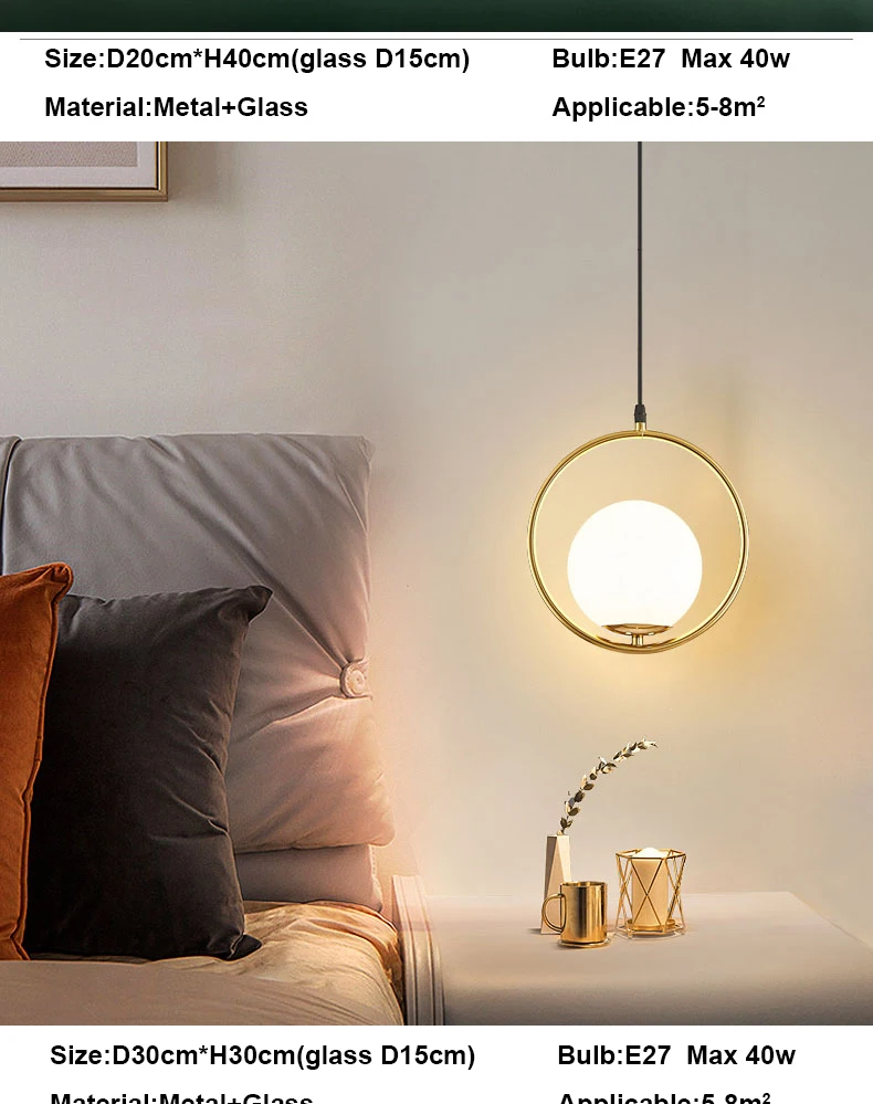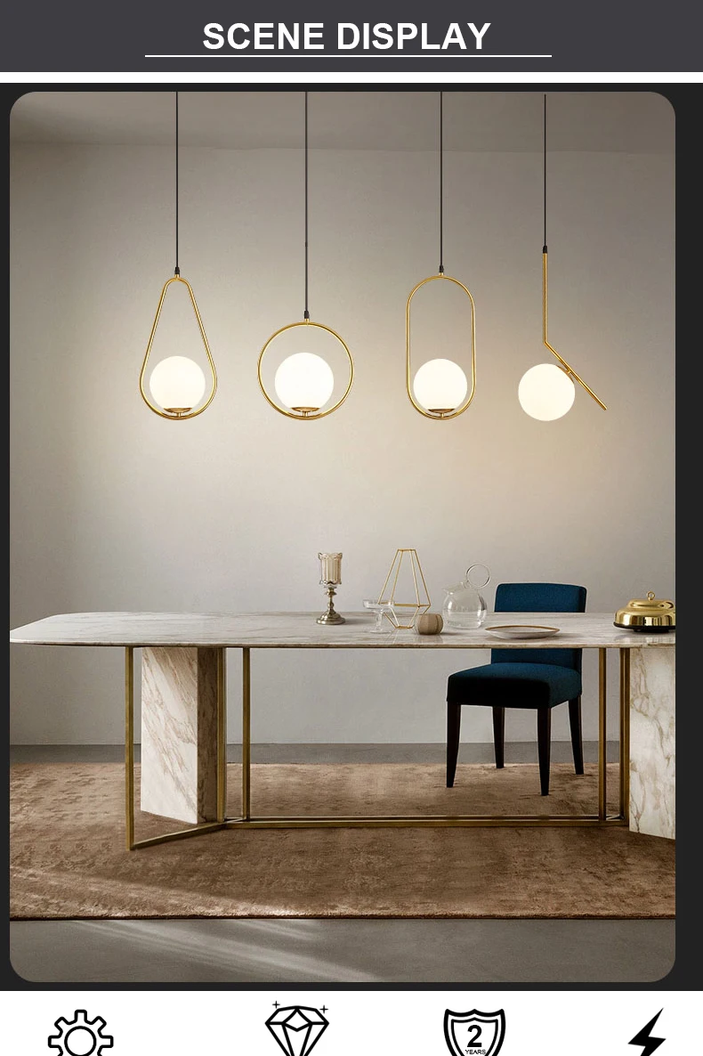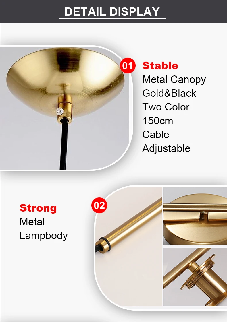 This minimalist pendant chandelier brings modern elegance to dining tables, kitchen islands, or foyer ceilings. The polished brass finish catches the eye, while the glass diffuser ensures even illumination without glare. Its sleek profile pairs beautifully with complementary pendant lights, floor lamps, or wall lights for a layered lighting scheme.