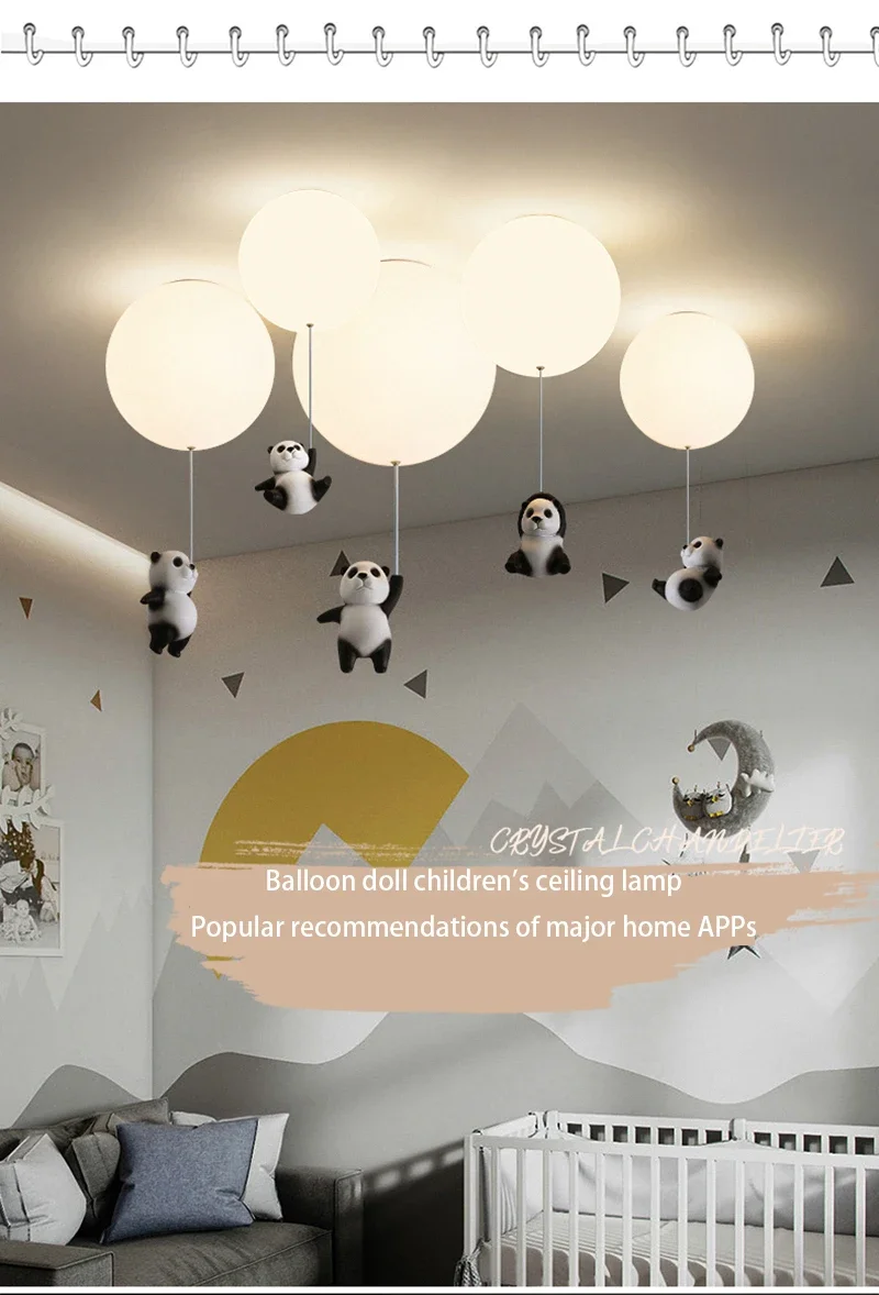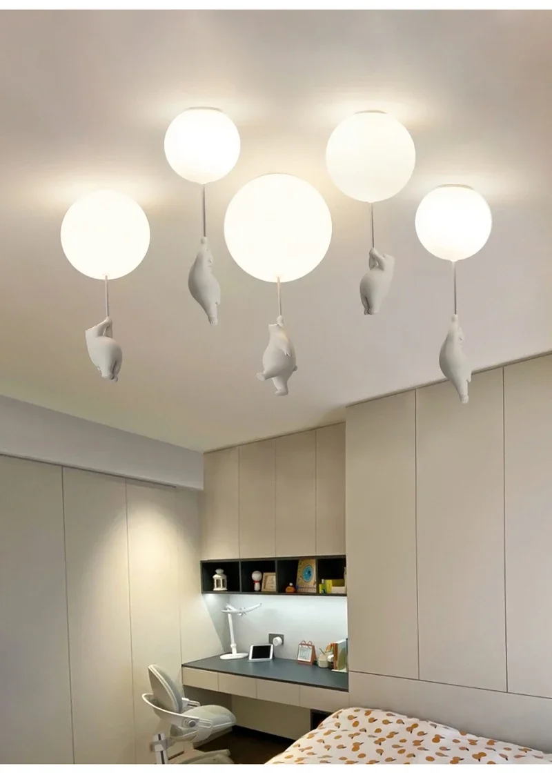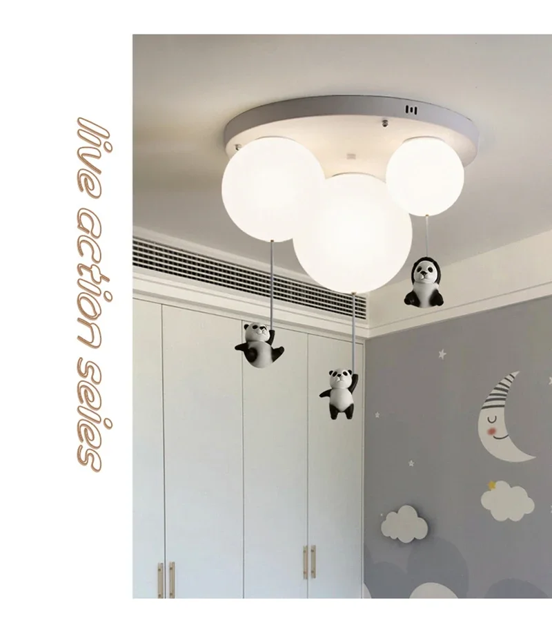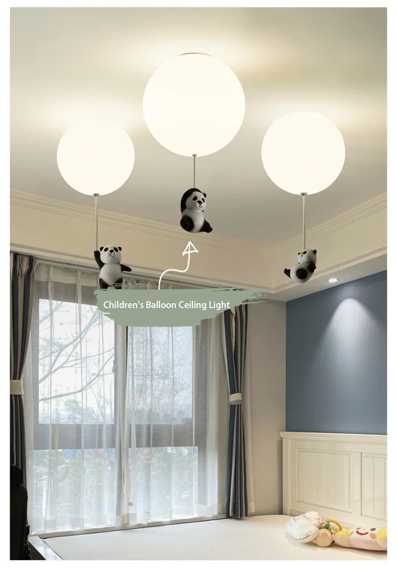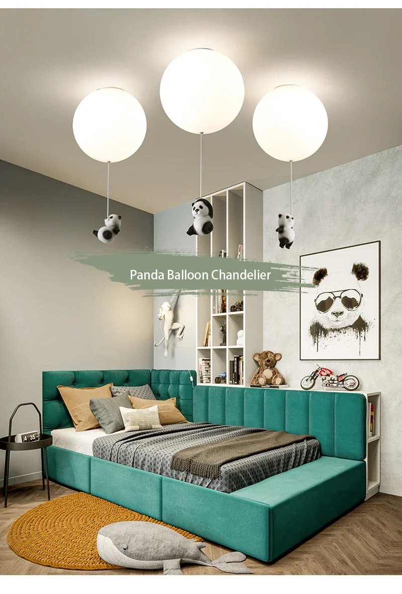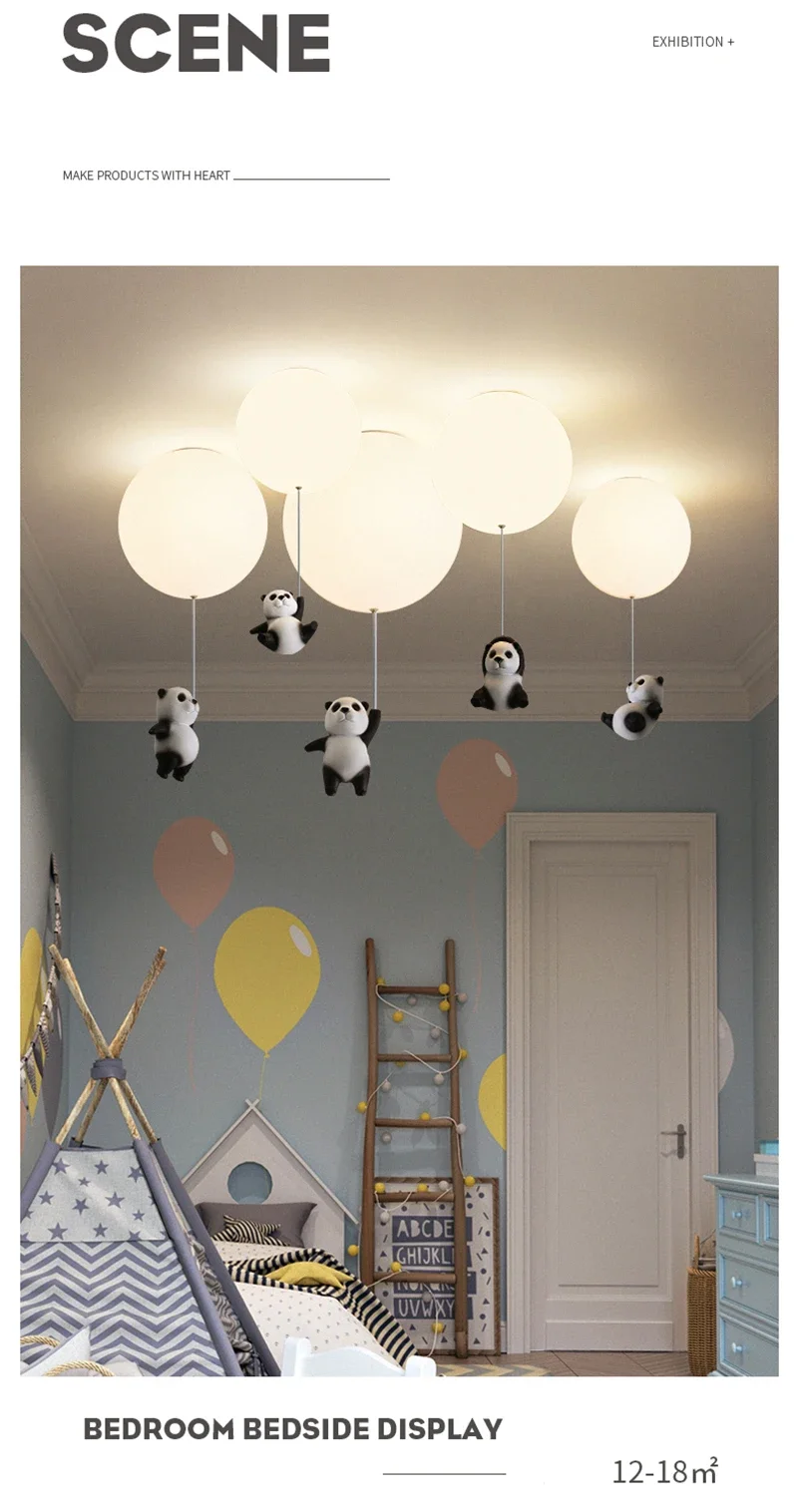 Cartoon Bear Panda LED Chandelier – Balloon Ceiling Light for Kids' Rooms & Nurseries