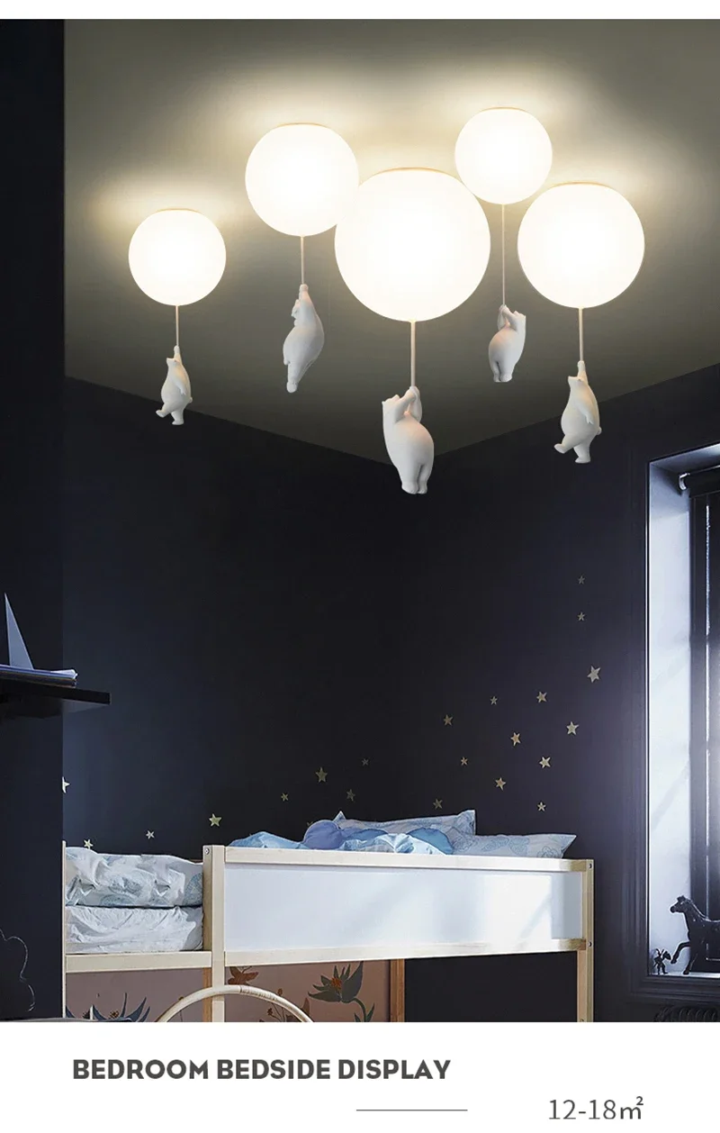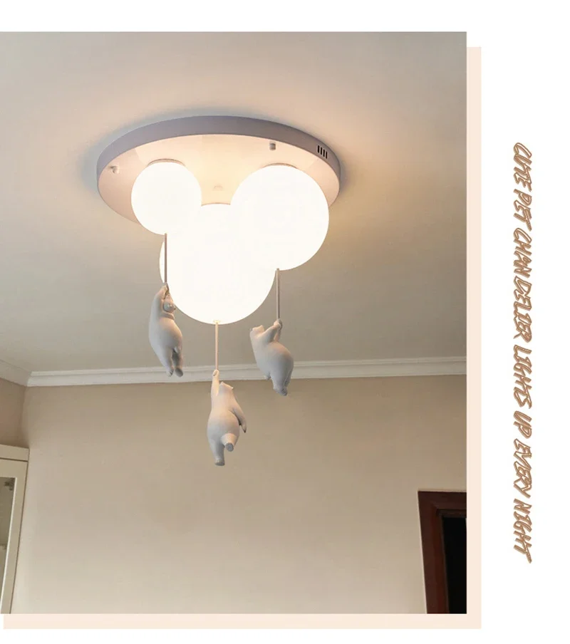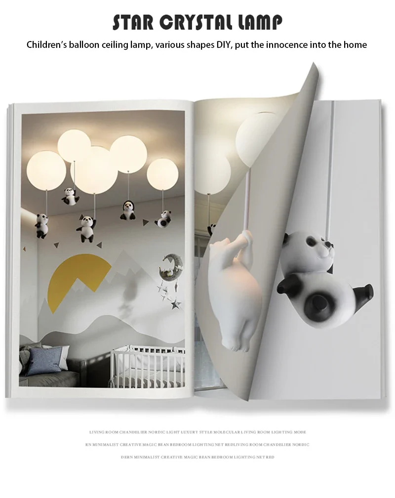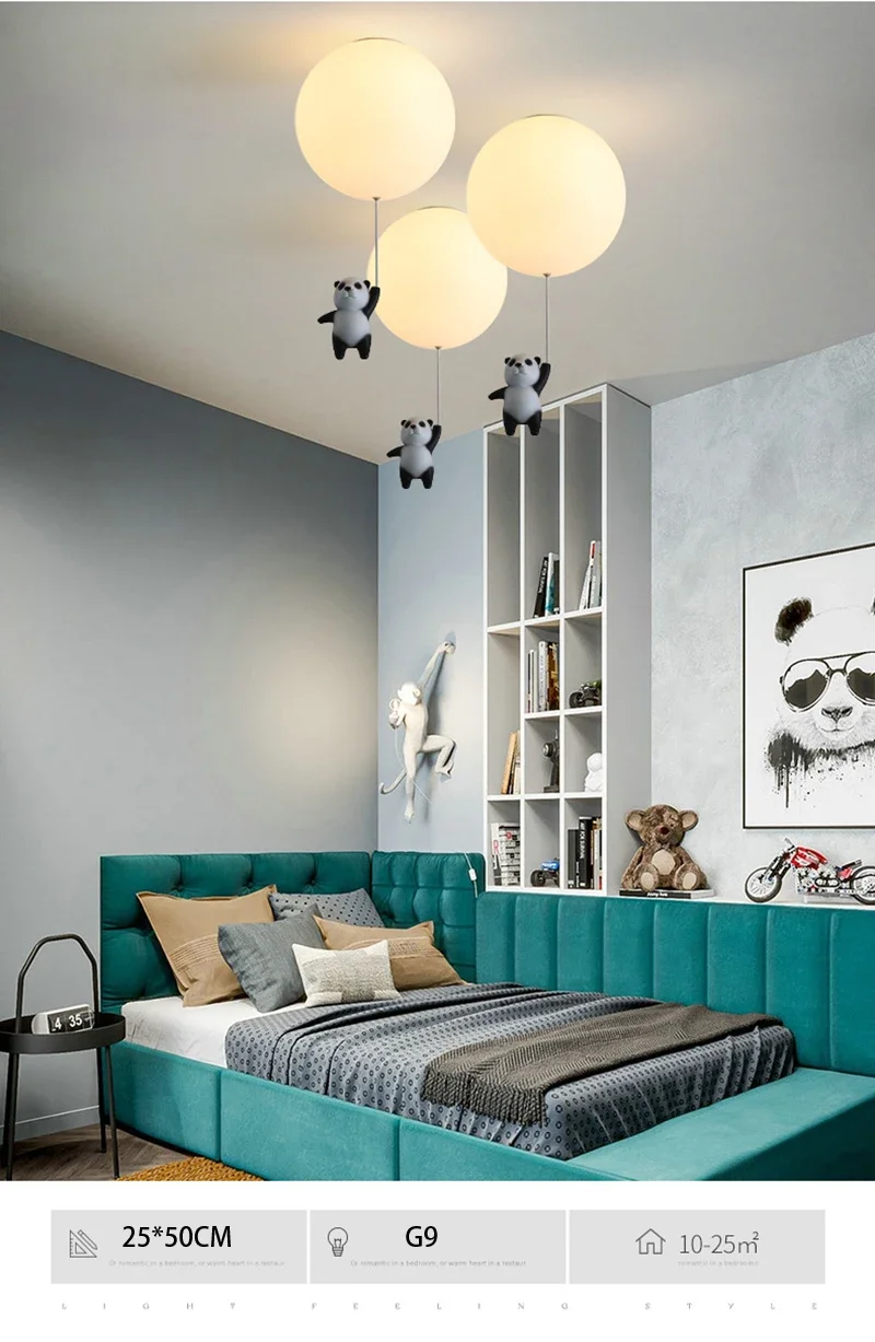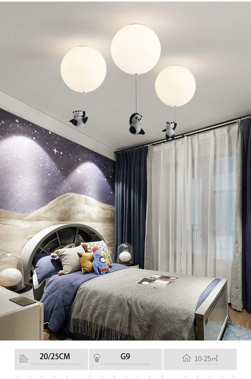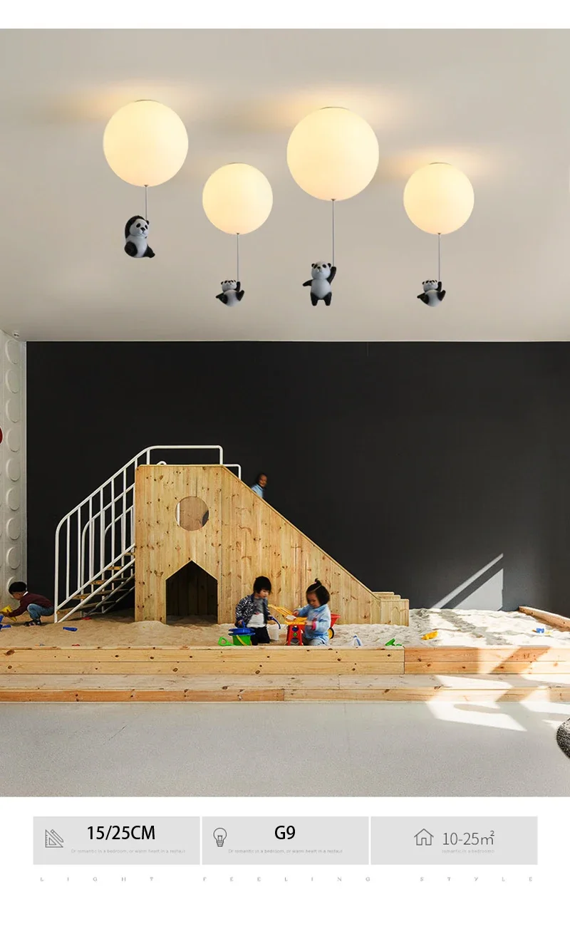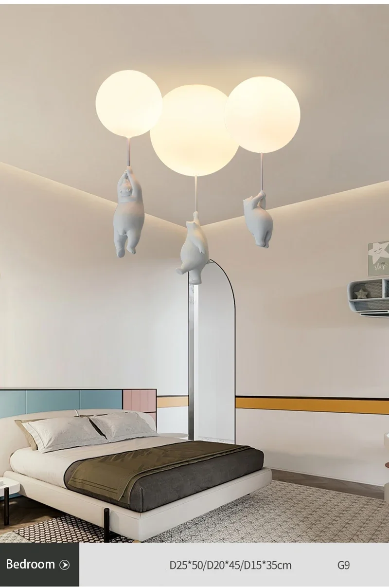 Cartoon Bear Panda LED Chandelier – Balloon Ceiling Light for Kids' Rooms & Nurseries