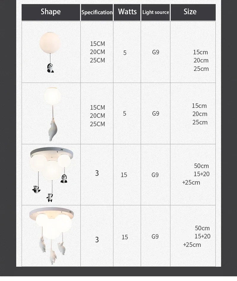 Cartoon Bear Panda LED Chandeliers Balloon Lights - A 15x35cm / Cool White is backordered and will ship as soon as it is back in stock.